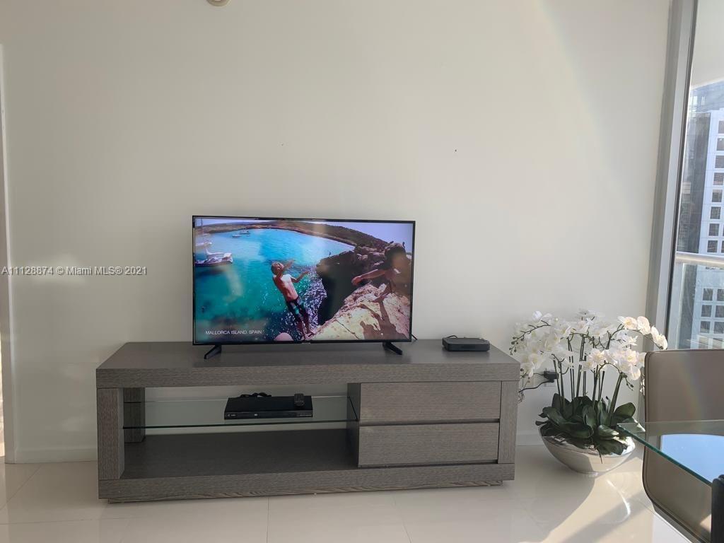 Elegant and lovely Fully Furnished 1 Bed/1 Bath condo on 39th Floor with balcony overlooking the River and City. Porcelain floors. Sub-zero/ wolf kitchen appliances package. European kitchen, with city and river views, state of art spa and gym, restaurants, infinity edge pools, billboard room, party room, concierge, valet and more. Short term rentals allowed