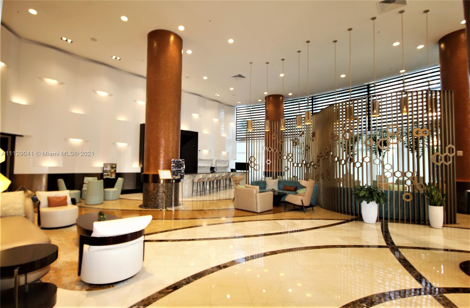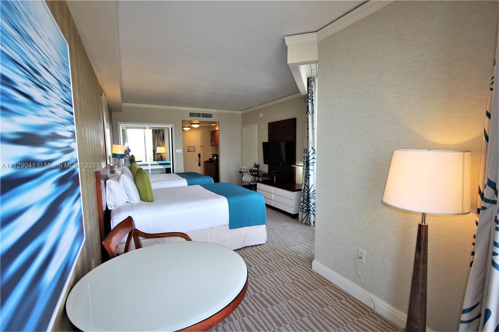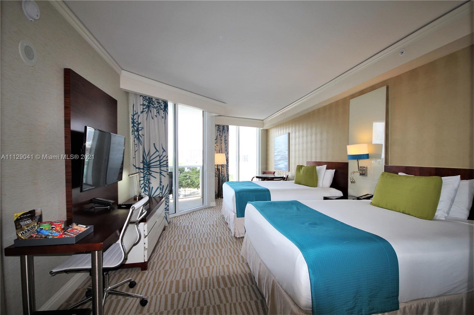 Competitively priced studio suite in this luxurious ocean front condo hotel resort with pool and beach service with chairs, umbrellas, towels, food and drink service and wave runners, 4 restaurants including beach front dining, full service spa, salon, tennis, state of the art fitness center, 2 pools, Kid Planet, child daycare and more. This gorgeous and bright semi corner unit with lots of glass has a gorgeous unobstructed south west view and partial ocean view, is fully furnished and equipped to the hotel standard and is on the hotel program. It features an open balcony, kitchenette with granite counter, dining area, large flat screen TV, and a luxurious bath. Don’t miss out on this amazing opportunity.
