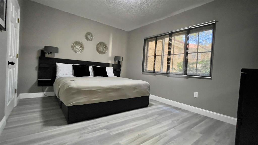 Renovated 1b/1b with attached garage in the desirable Aventine at Miramar community located in the heart of Miramar. Upgraded with water resistant vinyl coastal oak flooring, Samsung kitchen appliances and modern Electrolux washer/dryer and garage has upgraded epoxy flooring. Renovated shower featuring waterfall shower head and large walk in closet. This unit also has large covered patio as well. Community features 2 pools, gym, play ground, tennis courts along with bike and walking trails around a magnificent lake. Close to shopping and easy access to the Turnpike.