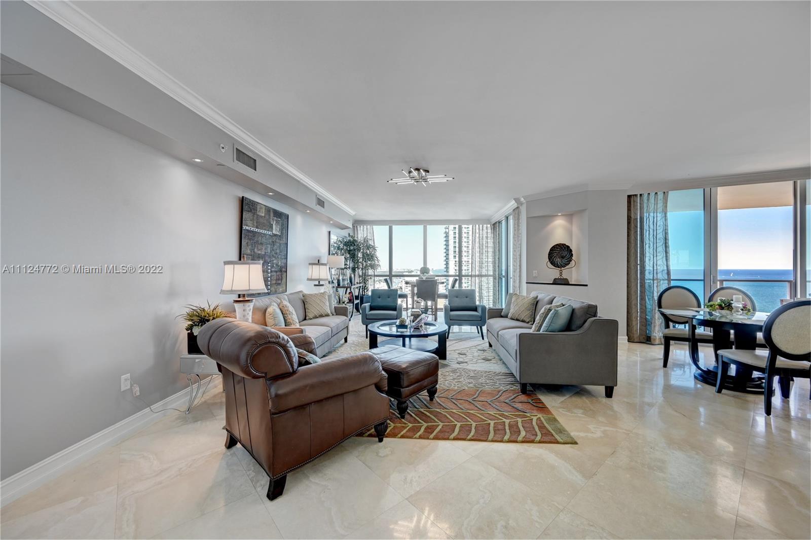 Bring your fussiest buyer to this newly refurbished sky home. A large flow thru unit (only 10 of these units in entire building) Private vestibule entry. New kitchen cabinetry, new porcelain kitchen countertops, new paint, new lighting fixtures. Both Southeast and Northeast ocean views. Marble flooring throughout. Many 5 star building amenities including beach and pool towel service, valet, tennis court, 2 story fitness center overlooking pool and ocean, on site management, clubroom, business center, media room, billiard room, BBQ area, sauna, heated pool and hot tub, dog run, more.
