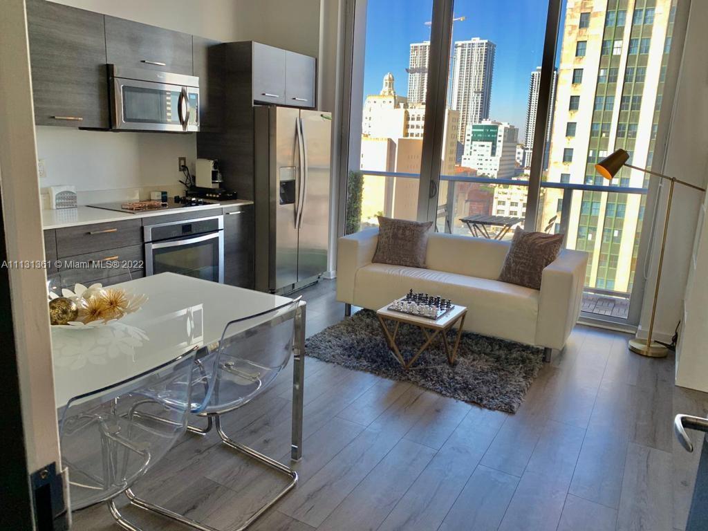 Beautifully furnished 1 bed/1 bath unit in Centro in the heart of Downtown Miami with amazing views of the city and the bay. Wood floor, 10-ft high ceilings, floor to ceiling windows, stainless steel energy smart appliances, Italian cabinetry, balcony, shades on windows, washer and dryer inside of the unit. Building common areas designed by Yves Behar. Amenities include: rooftop pool with 360 view of Miami, 2-story PH Lounge Area, Gym, Sauna and Steam Room. Basic internet and water is included in HOA. Building does not have parking garage but building offers valet parking for $225/month or parking at Miami Tower Building for $150/month. A beautiful place to live or as an investment. Can be rented 12 times per year, 30 days minimum. Rented until Sept 30 '22 for $2,500. Call listing agent