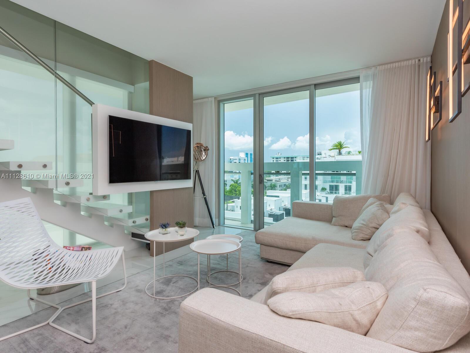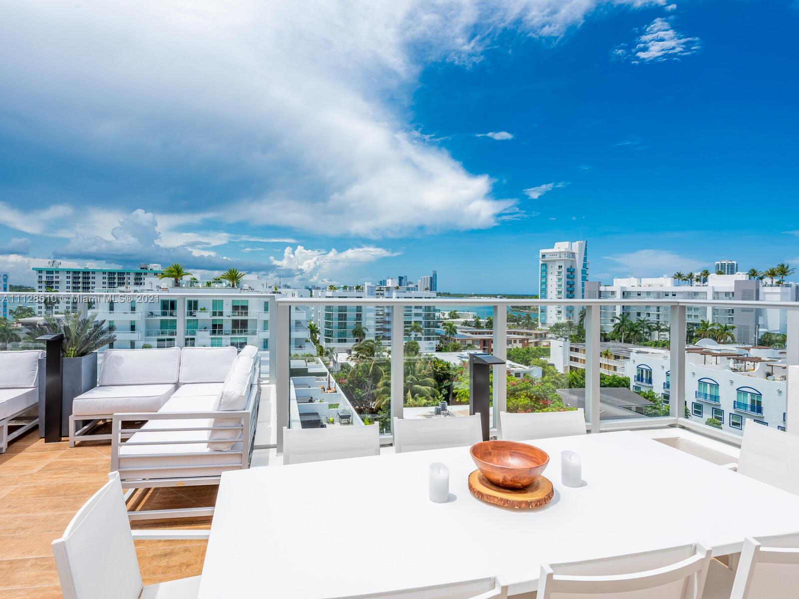 Enjoy the sunsets from the unit's PRIVATE ROOFTOP JACUZZI. Penthouse 3/3 unit in the distinctive One by Tross in the heart of Bay Harbor Islands. 7-floor building with 17 luxury residences with a rooftop pool. Area known worldwide for family atmosphere, exclusive boutique shops & restaurants, beaches, yachting, boating, plus excellent public school. Home to a K-8 school (an "A" school for 16 consecutive years!).
