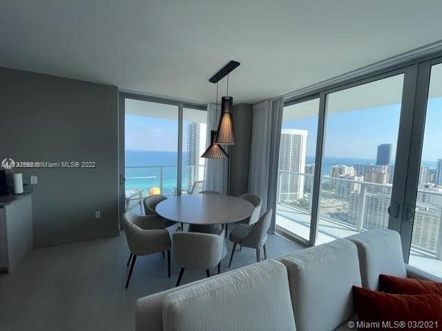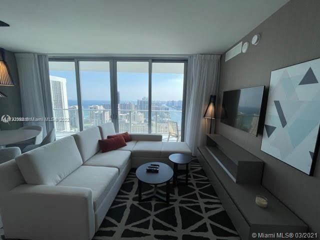 ENJOY WATER VIEWS FROM EVERY WINDOW! FULLY FURNISHED 2 BEDS/2BATHS SE CORNER* UNIT WITH WIDE WRAPAROUND BALCONY OFFERING PANORAMIC VIEWS OF INTERCOASTAL, CITY AND OCEAN. This building features five star amenities which include: Beachclub, beach service& bar, lawn area, BBQ, outside theater, snack bar, restaurants, tennis, Racquetball/basketball courts, infinity edge pool, 2 other heated pools, spa, high-tech fitness center and Business center/party room. Also includes private owners club with terrace BBQ gazebo Jacuzzi, interior lounge TV/ Living / Dining area. On-demand concierge staff and service. One assigned parking space and 24 hour valet included. GREAT FOR INVESTORS- NO RENTAL RESTRICTIONS. Owner cant stay in property no more than 150 days/yearly.