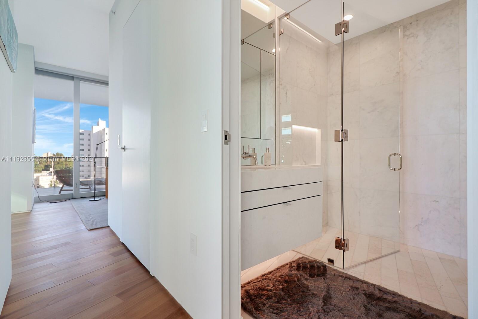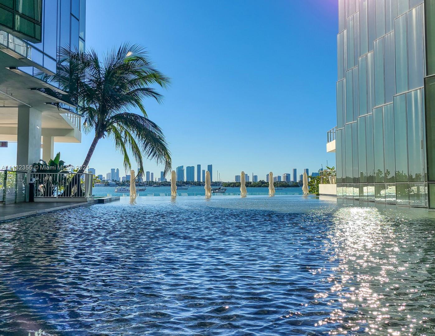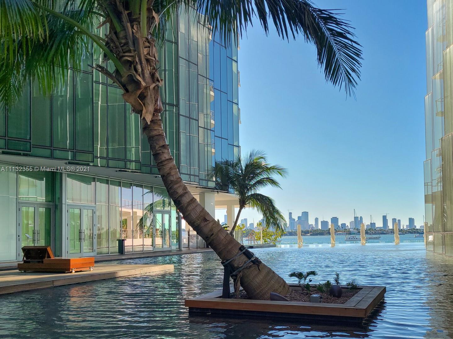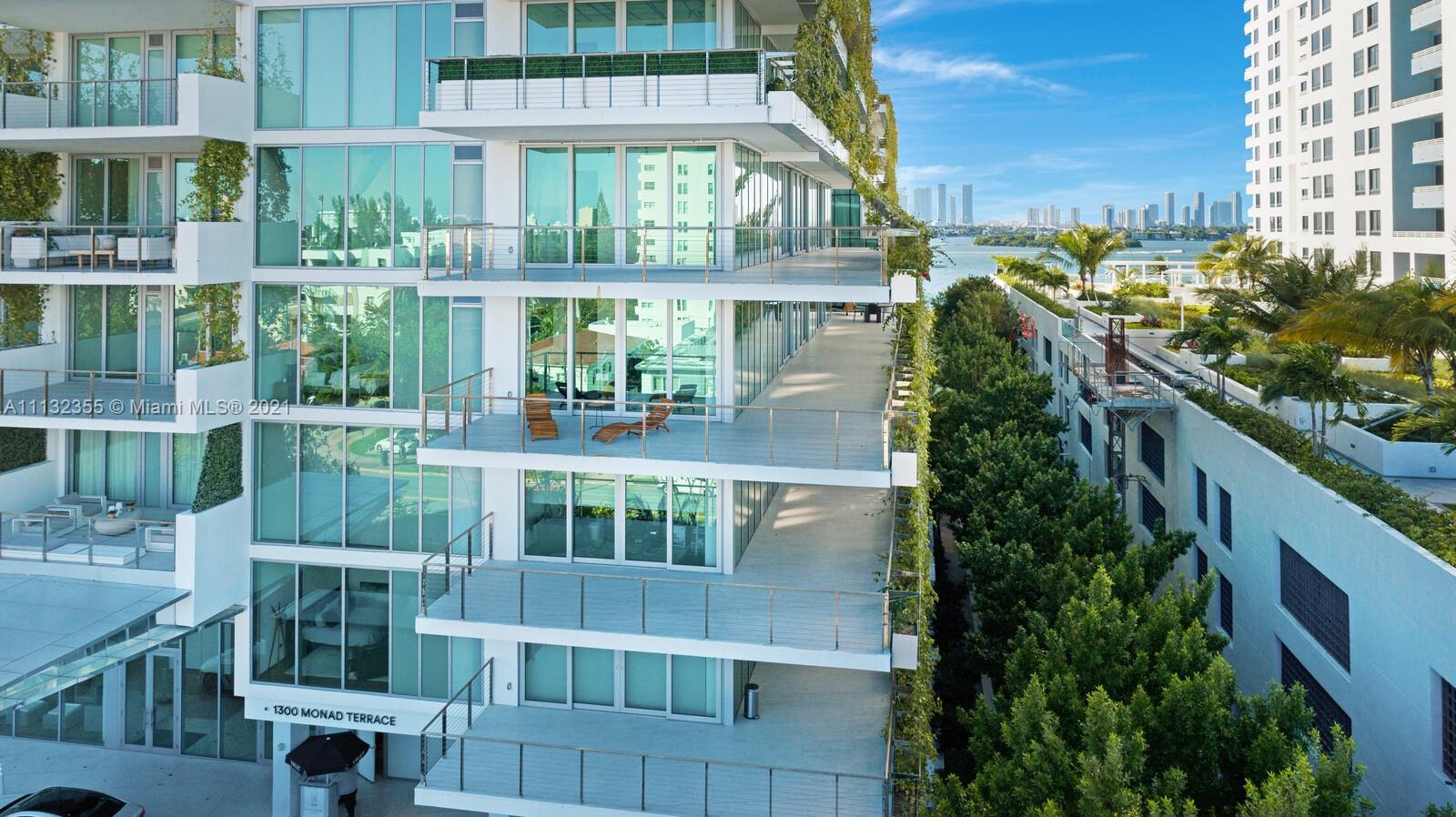 Composed of 59 individually designed waterfront residences around a glittering lagoon, Monad Terrace provides brilliant light, private outdoor space, climbing gardens, unique sawtooth honeycomb facades; stunning sunset views of Biscayne Bay. Kitchens with dramatic sculptural marble island. Master baths with richly veined, spacious stone countertops, marquetry flooring and tiled walls. Other notable features include custom cabinetry & built-in features, designer fixtures, teak flooring throughout.This is a stunning, light-filled floor plan, 3 bedroom 3.5 bath condo with 2691 internal sq. ft. and an expansive wrap around 1800 sq. ft. terrace. The unit also features a private elevator entrance and 2 assigned underground parking spaces.