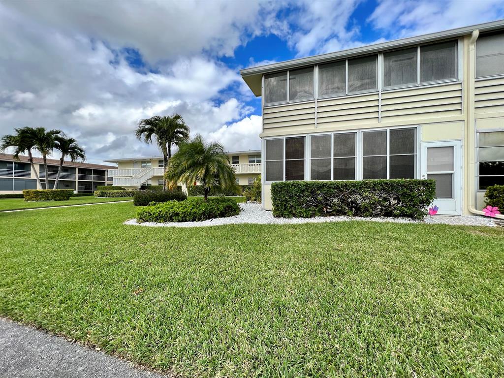 Beautiful move-in ready first floor CORNER unit in a lovely well-maintained pet friendly building within 55+ Century Village. Kitchen and baths have been tastefully updated. Neutral tile floors throughout. Central AC is new within the last few months. Enclosed lanai. The building is well maintained with manicured grounds, lovely resident only patio, and allows pets (one cat or one small dog 15lbs or less per unit). Tucked away location yet close to Hastings Fitness Center, Main Clubhouse, and the East gate. Century Village is a 55+ community with so much to offer...