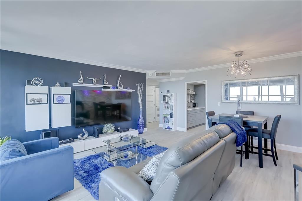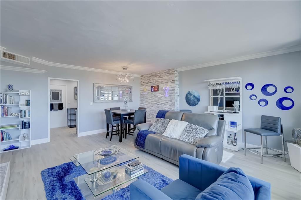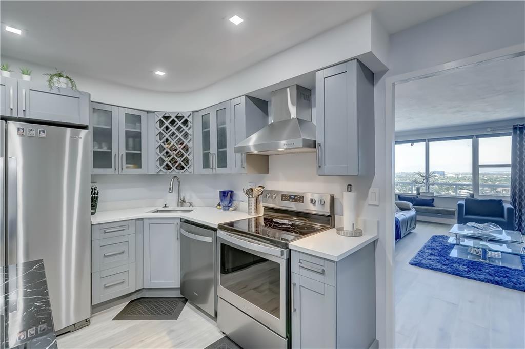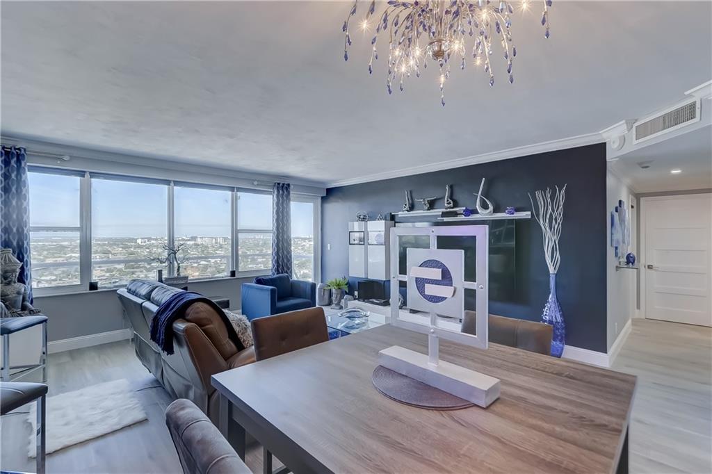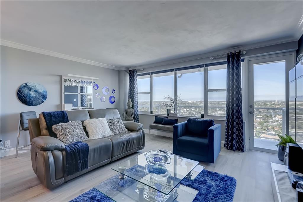 PENTHOUSE unit, totally redone with beautiful new plank flooring. All kitchen appliances still under warranty. Gorgeous bathroom. Incredible view for miles. You can see the ocean, watch boats going by on the intracoastal and look over Coral Ridge Golf Course. A separate clubhouse on the intracoastal is perfect for bbq's with floor to ceiling windows. Short walk to the beach, close to shopping, entertainment, restaurants, grocery stores. Building is almost done with the 50 year concrete work, being painted with new glass balconies. Cash only 55+ community, minimum 700 credit score, no pets, no renting. Minimum $57,600 income required to purchase this unit. $550 per month maintenance includes water, sewer, trash, wifi and cable.