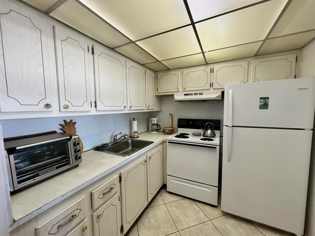 Popular floor plan in 55+ Century Village! Neutral tile floors in the living area. Updated impact windows in front. Long enclosed lanai. Spacious bedroom suite with wall of closets, access to lanai, and full en-suite bath with updated step-in shower. Pretty tropical patio area for building residents. Sold AS IS and with furnishings as shown. Century Village is a 55+ community with so much to offer...