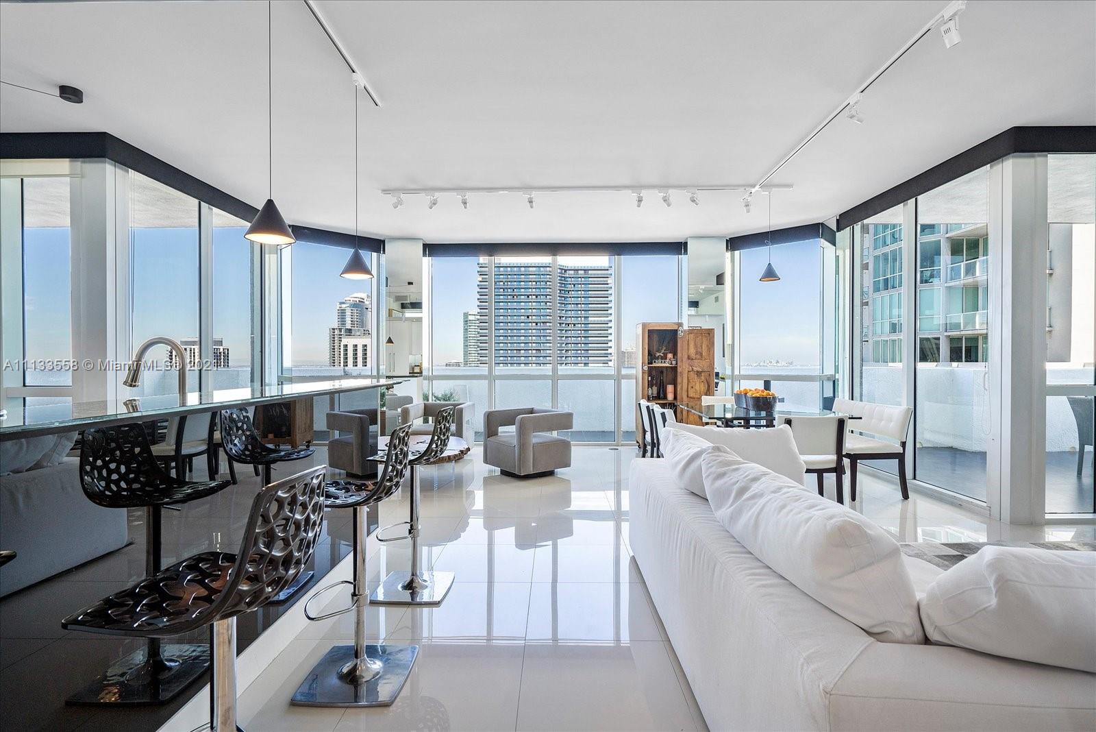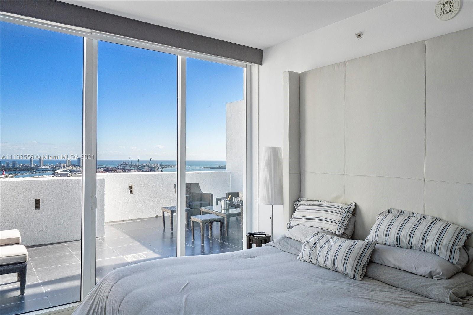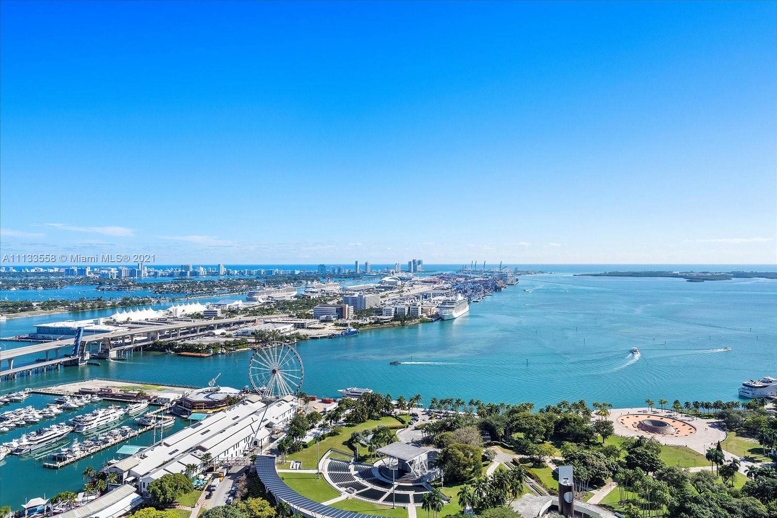 Attention buyers, rare opportunity! Lower penthouse corner unit 3 br/3 ba 1795 sqft with over 1500 sqft outdoor living space. Imagine drinking your morning coffee on this sprawling, wrap-around balcony with stunning Ocean views. The unit is located on the 40th floor with 180-degree views of sunrises east over Biscayne Bay and sunsets west over downtown Miami. Split floor plan with large private balcony in master bedroom suite. Kitchen with granite countertops, Miele appliance, additional under-counter Double Drawer Refrigerator, eat in kitchen, kitchen bar and mirrored doors. Best luxury condo downtown with over 3000 square-foot indoor/outdoor living space. Great building with 24 hr. Concierge, clubhouse, spa, gym, 4 pools, Jacuzzi, movie theater, billiard, ping pong an on-site bar.