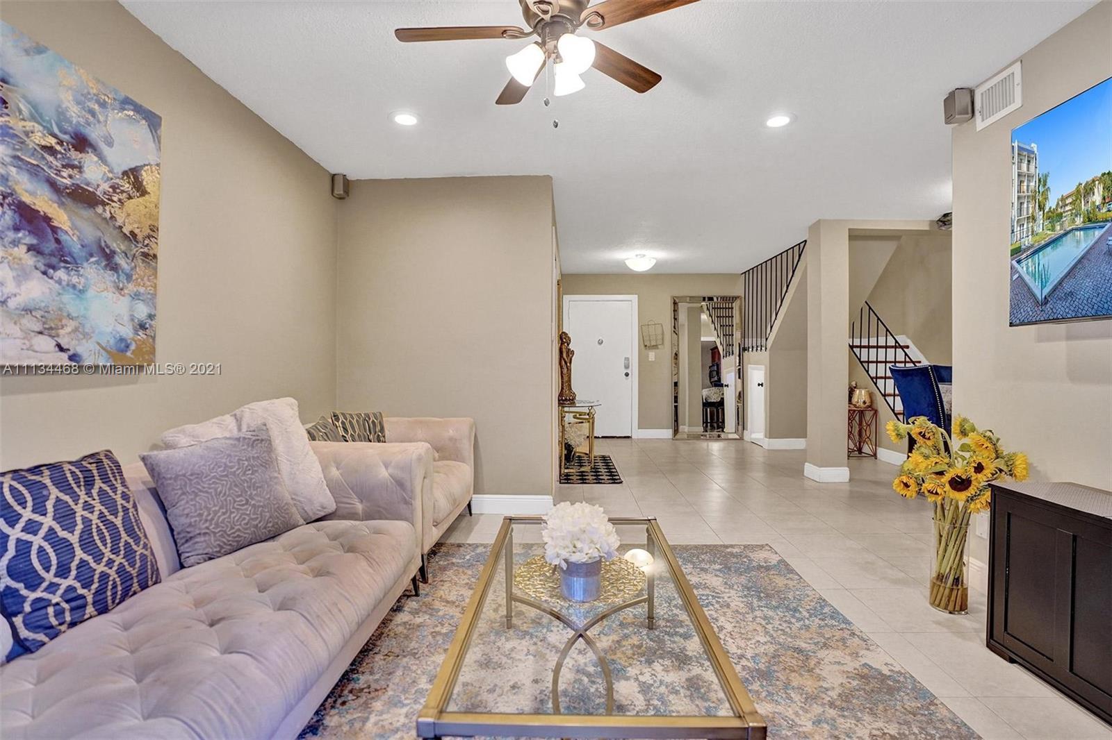 Come call this piece of Plantation Home! This townhouse style condo is located on the first floor and features a half bath downstairs upon entry with 2 bed rooms and a full bath upstairs. It is tucked away just a few steps from your own personal assigned parking space. The HOA features a clubhouse with a pool, tennis court, and basketball court that is nestled next to a canal waterfront. Village Square Condominium community is located in the heart of Plantation minutes away from popular shopping malls, just west of the Turnpike, and just east of University Dr. Currently this unit here DOES NOT have a special assessment as other units may however a second assessment will be voted on early next year.