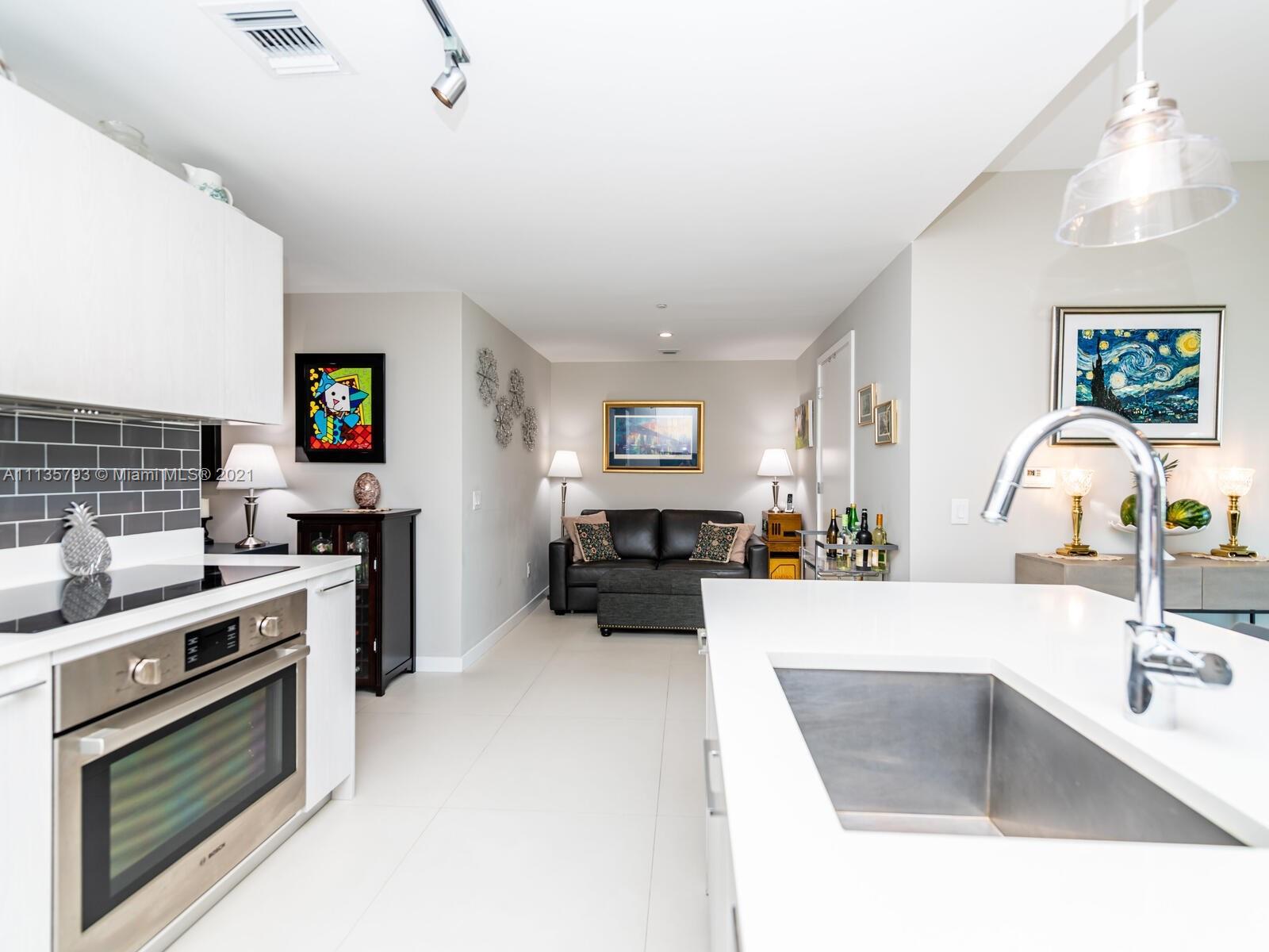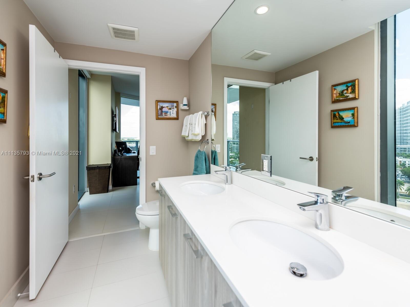 Paraiso Bayviews: Over 50K in upgrades and improvements, BEST 10 PLAN. 2BR 2BA with large den/dining/office area . Dramatic corner plan has panoramic views from all rooms through massive wrap around balcony. Property never rented-only owner occupied and in excellent condition. UPGRADES INCLUDE: 32" ceramic flooring indoor and out, custom closet cabinetry, private storage locker (rare) expanded Ital Kraft kitchen, glass backsplash and window treatments. One car self park. Owner needs short term rent back. Bayviews boasts rooftop pool, jacuzzi, baths, showers and kitchen grill area plus large resort second pool with grill and cabanas at 5th floor amenity level, gym, theatre/game room, club kitchen lounge, spa, sauna and more.