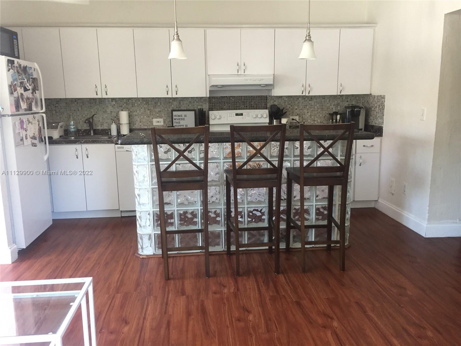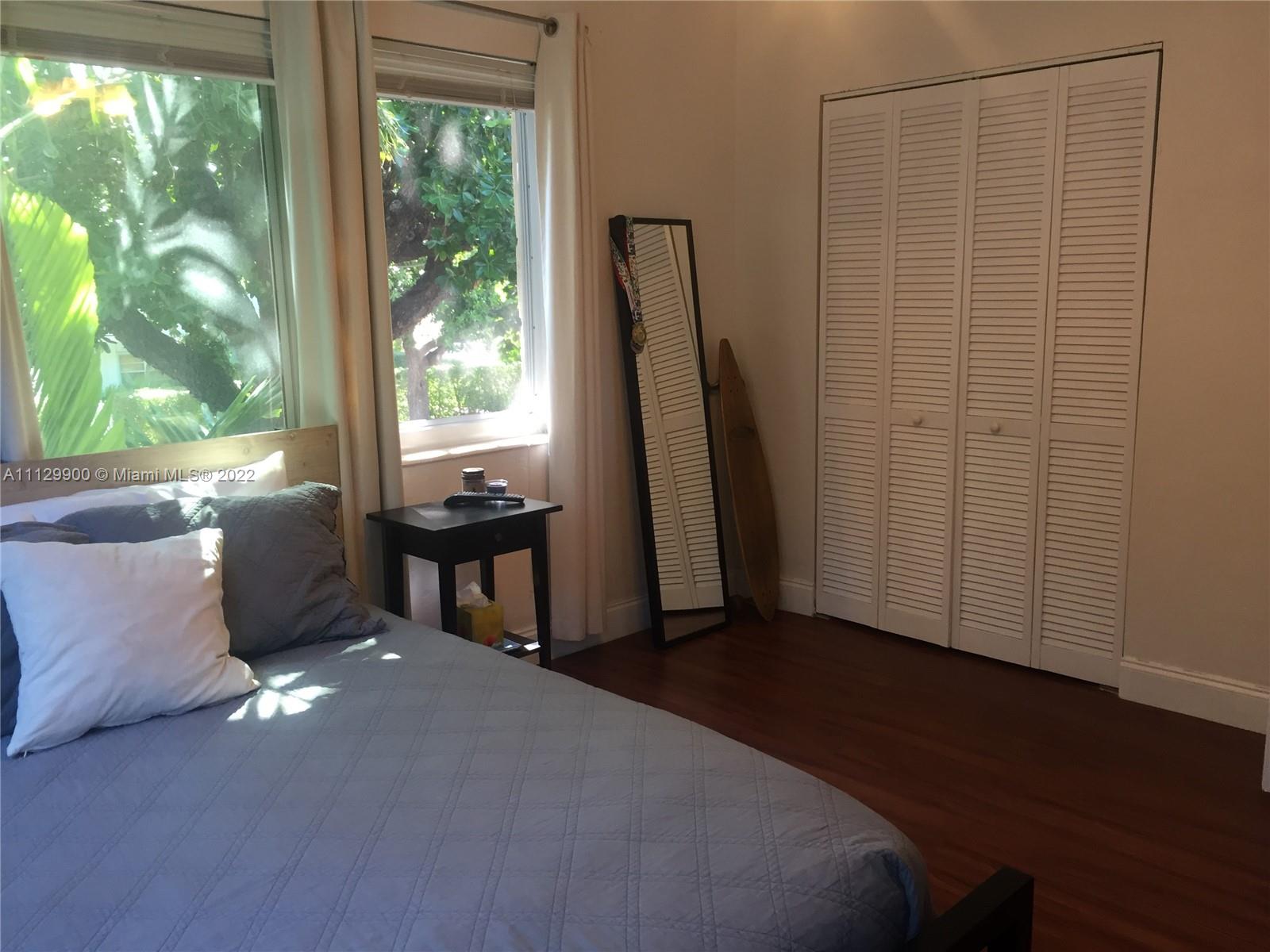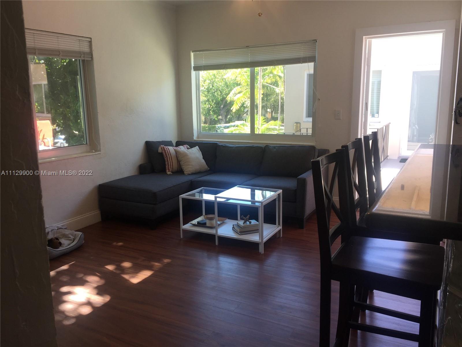 Best unit in the building! Corner 1/1 on top floor with beautiful views of the garden and leafy Meridian Avenue. Condo has large kitchen, washer and dryer, central ac, impact windows, laminate floors, and private outdoor patio. Excellently maintained building with low monthly HOA. Quiet, professional neighbors and dogs up to 40 lbs are allowed. 900 Meridian is a historic, art deco building that's an easy walk to the ocean, park, and shops.