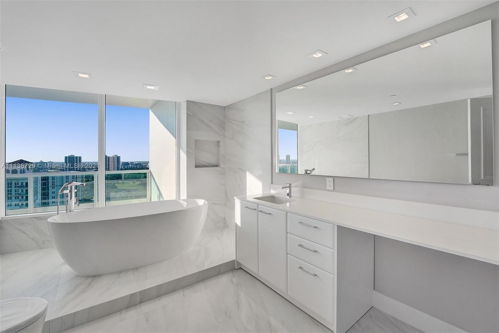 MAGNIFICENT CONDO IN THE MOST LUXURIOUS COMMUNITY IN AVENTURA. Fully renovated apartment with over 3300 SQF of large living space with 3 bedrooms, 4.5 baths, den can be used as an office/extra bedroom, custom made kitchen with views of the ocean, intercostal and golf course. PORTO VITA OFFERS A LIFE OF A STAR HOTEL. PRIVATE CLUB, RESTAURANT, GYM, SPA, TENNIS, & POOL