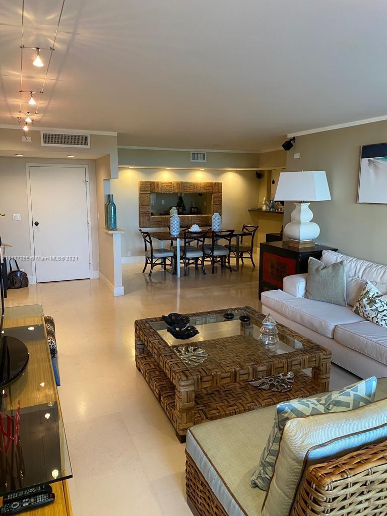 Beautiful 2/2 apartment. Remodeled and fully equipped. Stainless steel appliances, granite counter tops. Split bedroom plan with new impact floor to ceiling windows, large terrace ideal for entertaining and dining al fresco. Many amenities such as tennis, 2 pools, BBQ area and more, gated complex with guardian and lobby attendants. Unit located in Tower 1 just steps to the beach, with gymnasium & restaurant for optimal convenience. Beauty Salon and Management Office in Tower 2. Currently tenant occupied until August 21, 2022, monthly payment $ 5,000.00.