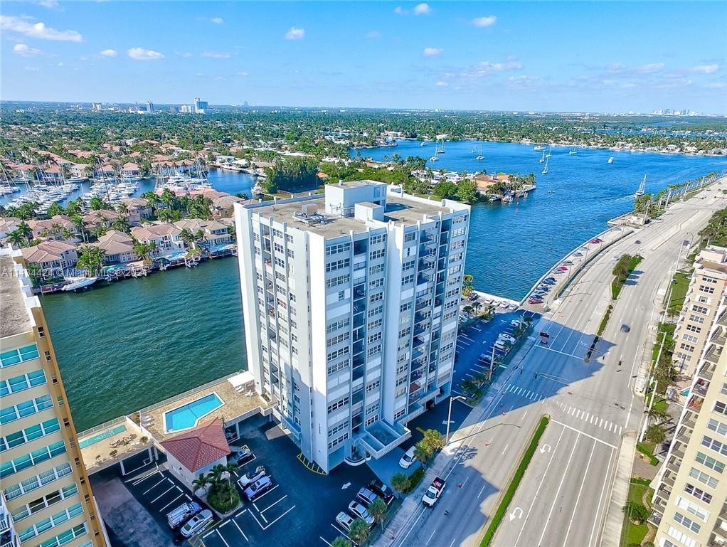 BEAUTIFUL 2 BD 2 BATH CORNER UNIT~BUILDING ON INTRACOASTAL WATERWAY~TILE FLOOR THROUGHOUT~LARGE BALCONY W/PARTIAL VIEWS OF THE OCEAN~SPACIOUS LIVING/DINING ROOM COMBINATION~UPDATED OPEN KITCHEN W/ SS APPLIANCES & COMBINATION GLASS & WOOD DOOR CABINETS~ACCORDION SHUTTERS~2 LARGE BEDROOMS~MASTER BEDRM HAS DOUBLE CLOSET WITH LOTS OF WINDOWS~MASTER BATH HAS TUB/SHOWER COMBO~2ND BEDRM HAS A SPACIOUS CLOSET~2ND BATH HAS PORCELAIN TILE ON WALLS & FLOORS W/ GLASS DOOR SHOWER~ONE BEDRM IS FACING NORTH W/ PARTIAL INTRACOASTAL VIEWS~EXCELLENT LOCATION W/ GREAT AMENITIES~SHORT DISTANCE TO THE BEACH, HOLLYWOOD BROADWALK, SHOPPING, & DINING. PARKING SPACE IS UNCOVERED, NO VALET PARKING AVAILABLE.