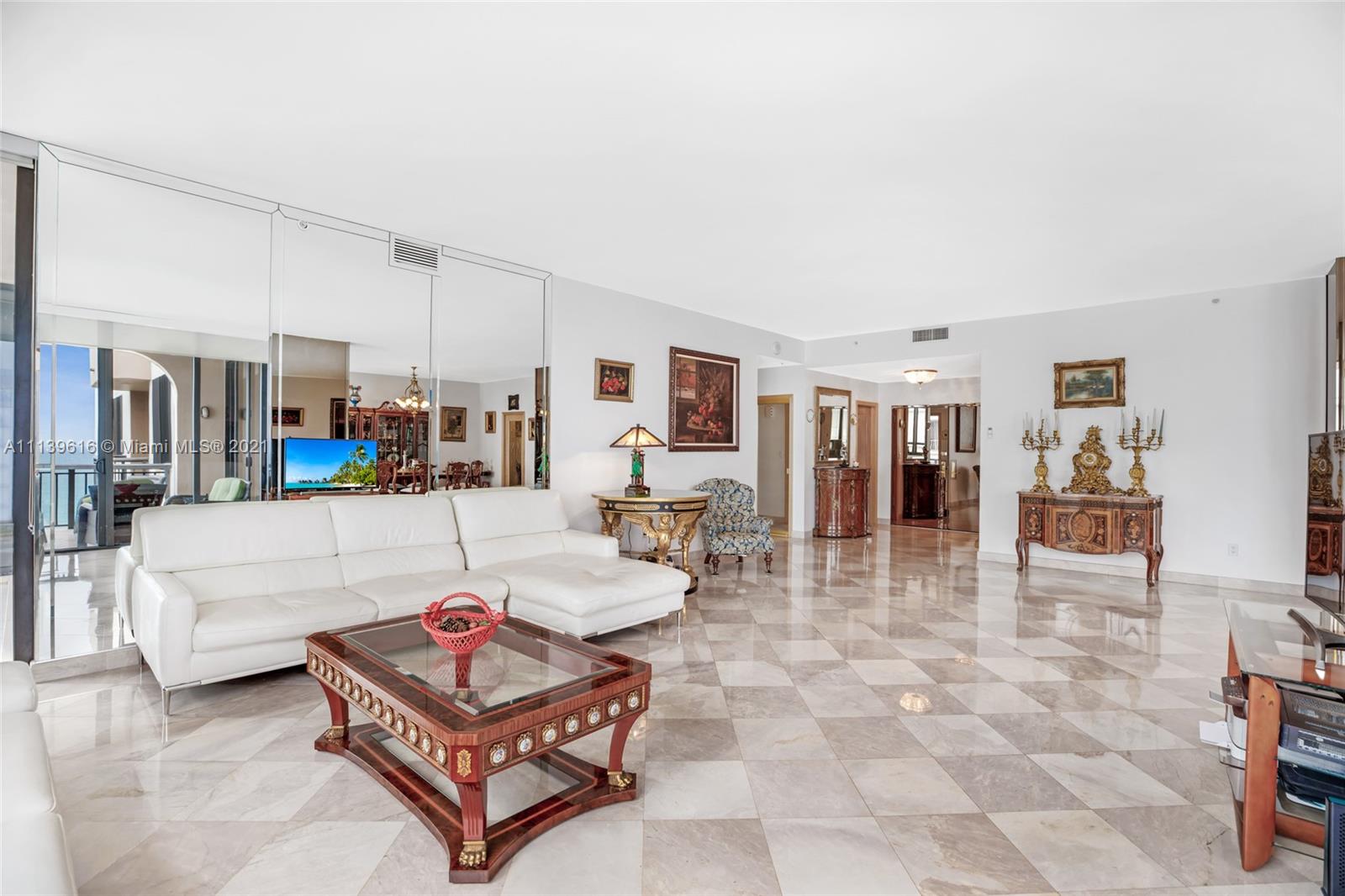 Rare and unique penthouse in the sky. Wake up to breathtaking views of the ocean, blue skies & beaches. Professionally decorated, classic style, marble floors, Italian wooden kitchen with high end appliances, high ceilings, new hurricane proof window and doors ( floor to ceiling.) Open floor plan, custom made walk in closets - his and hers. 2 oversized terraces (500 sq ft) with amazing ocean view. This penthouse may be purchase with furniture & antiques. Tiffany of Bal Harbour is a luxurious oceanfront Boutique building. Excellent amenities including beach access, large sundeck, heated pool, clubhouse, spa, fitness, billiards room, library 24 hour concierge and valet parking. walking distance to Bal Harbour mall & restaurants, Halouver Marina. Make sure you see 3-D virtual tour !