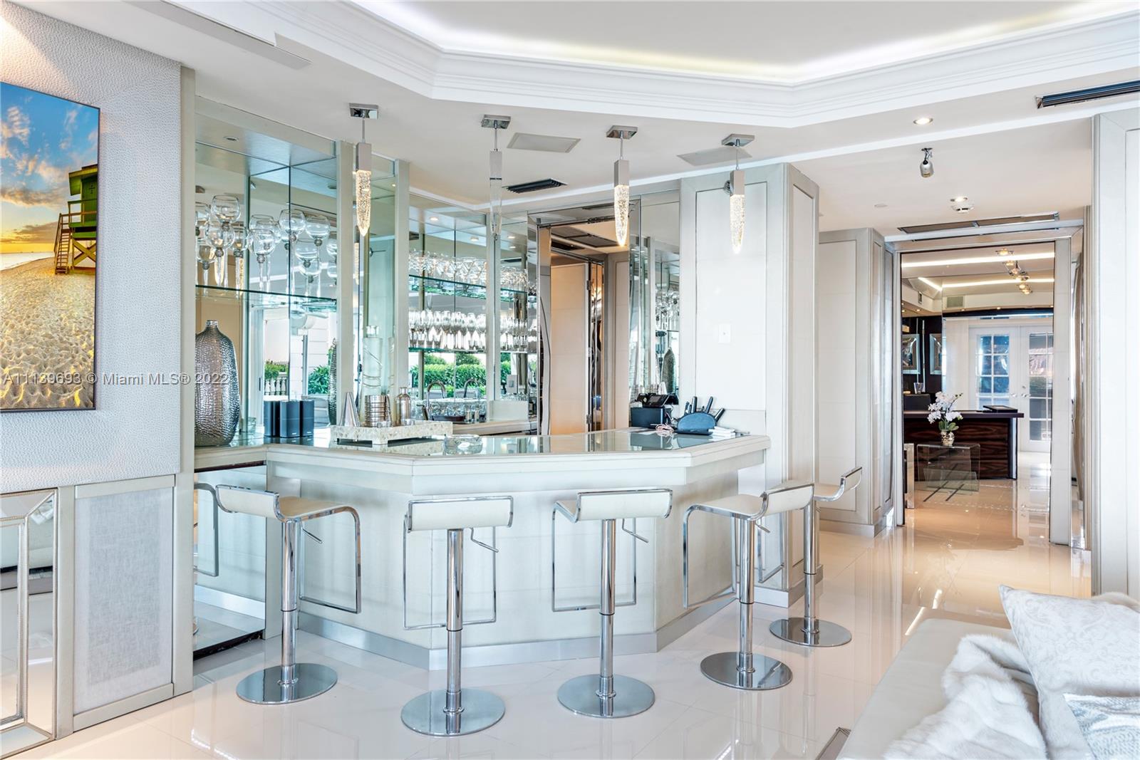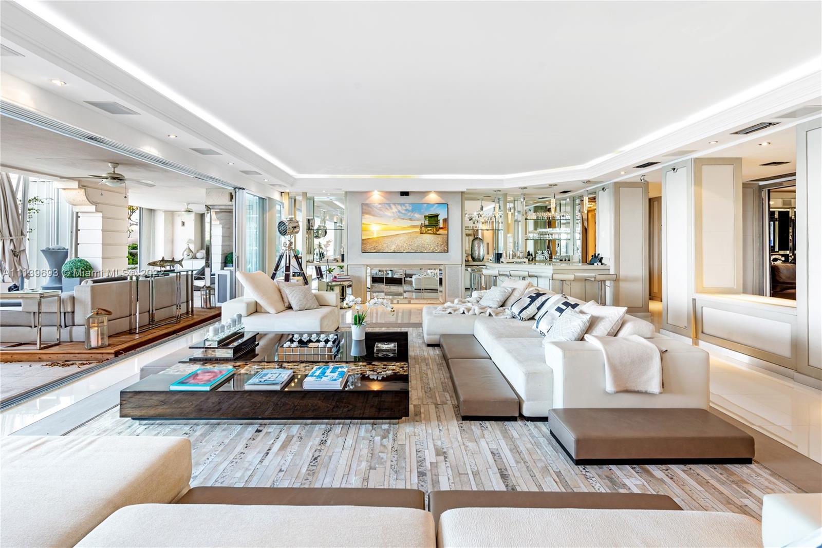 Experience Fisher Island living at it's finest in this stunning renovated ground floor Bayview unit. This one of a kind masterpiece encompasses 6,209 sq ft interior and 2,516 sq ft of expansive terraces overlooking the Miami downtown skyline and Biscayne Bay with breathtaking sunset views! This 5 bedroom, 5 bath + 2 powder room residence has been professionally designed with FENDI wallpaper and door panels throughout. The unit showcases: spacious open living room with a bar and formal dining, exquisite white porcelain & oak floors, a Chef's kitchen with top of the line appliances, an eat-in center island, a built-in surround sound system and many more features. Visit this exceptional fully furnished unit! Easy to show!