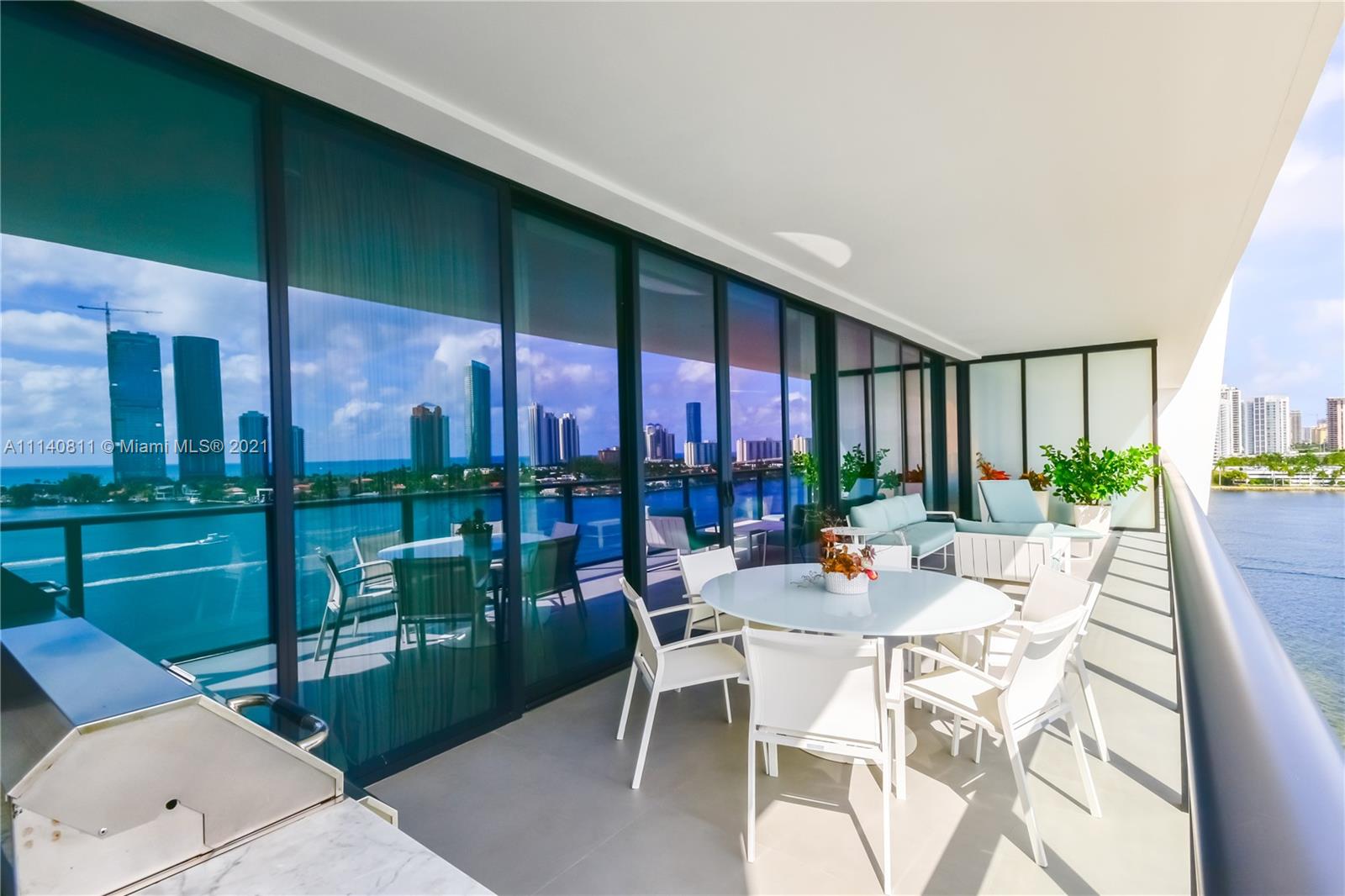 Impressive and unique large unit at PRIVE. A magnificent complex in an 8-acre private island in Aventura. This gorgeous unit features a flow-through lay out w/3 bedrooms + den/4,5 baths & breathtaking views to Bay/Ocean from every window/10’-foot floor -to -ceiling glass windows & deep terraces with barbecue . European grey Italian porcelain 48 x 48 floor, sound system .Has a built storage room, high end custom made walk-in closets,. Private elevator & modern European Kitchen. Amenities include: Gym/Spa, large pool deck with East/West views;2 pools & pool bar service, restaurant/cafe on site; entertainments room, cigar room, wine room, tennis courts, boat dock, children's playground & game room and much more. 3 assigned parking spaces.