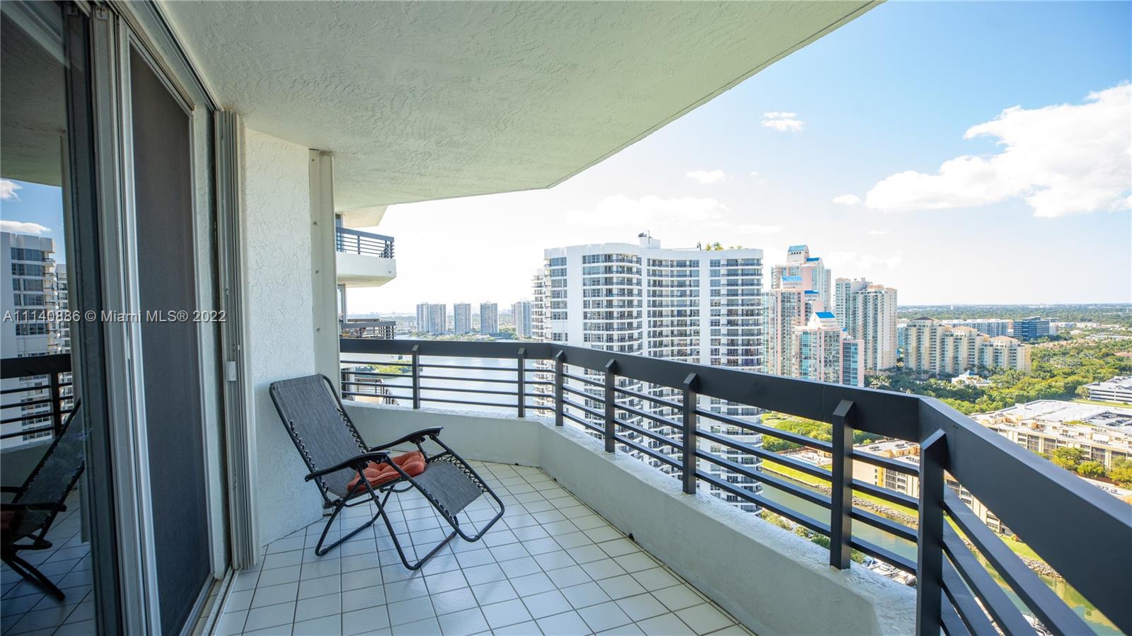 One of a kind! Enjoy amazing views of sunsets, w/ views of Turnberry Golf Course, the intracoastal, skyline & marina from this spacious remodeled apartment. Natural light flowing through this modern apartment located on the 30th floor. Split floor plan 2 bedrooms, 2 baths, balcony with breathtaking views. Full building amenities including: Fitness center, heated pool, Jacuzzi, game room, library and 7 clay tennis courts, basket ball court, pickle ball and dog park. Mystic Pointe is a desirable and all-inclusive gated community. Easy to show! Call listing agent.