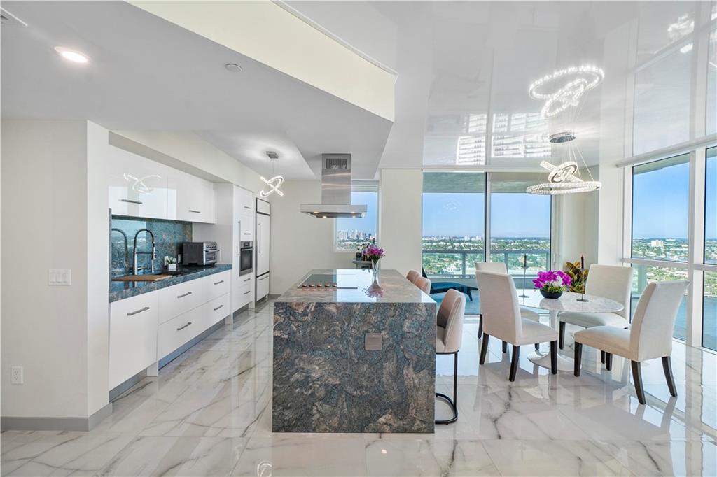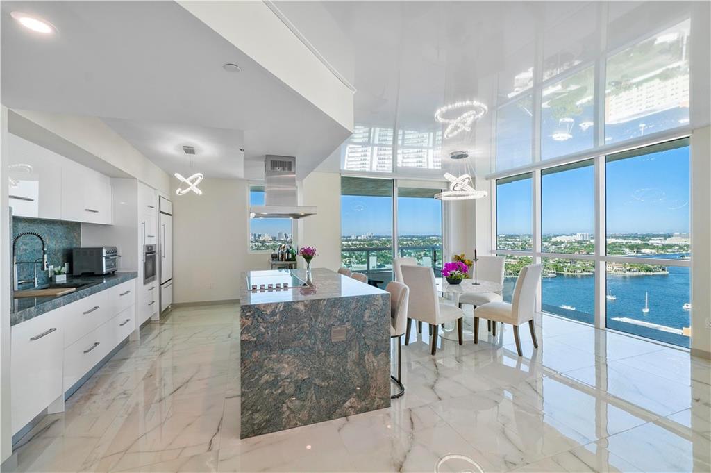 FULLY REMODELED open-concept 2/2 with CUSTOM designed kitchen, marble flooring, fixtures & more! Highly desirable NW corner residence offers dramatic views of the Ocean, Intracoastal Waterways, & Downtown Skyline! Designer recessed lighting in new reflective ceiling showcasing ocean, intracoastal & city skyline. The chef's kitchen is equipped with stunning quartzite countertops & custom appliances incl. Sub-Zero & Miele. This exclusive residence includes a private elevator foyer entrance & floor-to-ceiling high impact glass providing views from every room! Las Olas Beach Club is steps away from the beach, dining, entertainment, & includes All Resort-Like 5 Star Amenities such as OceanFront Infinity-Edge Pool (service included),fitness center, Dedicated Concierge, & more!
