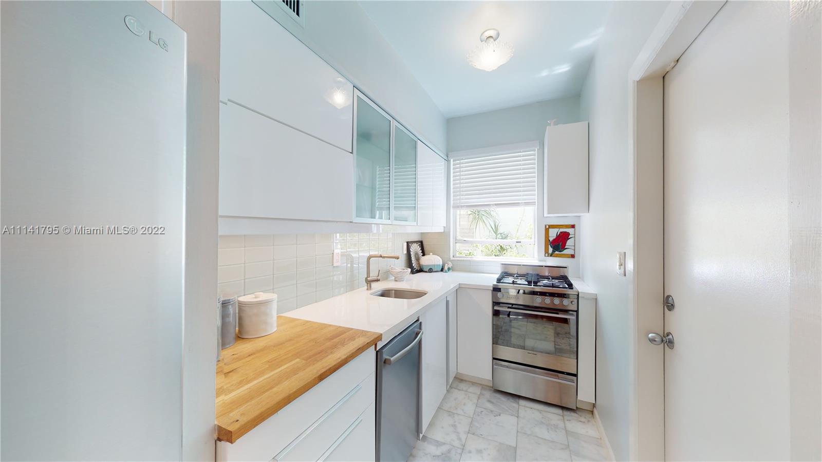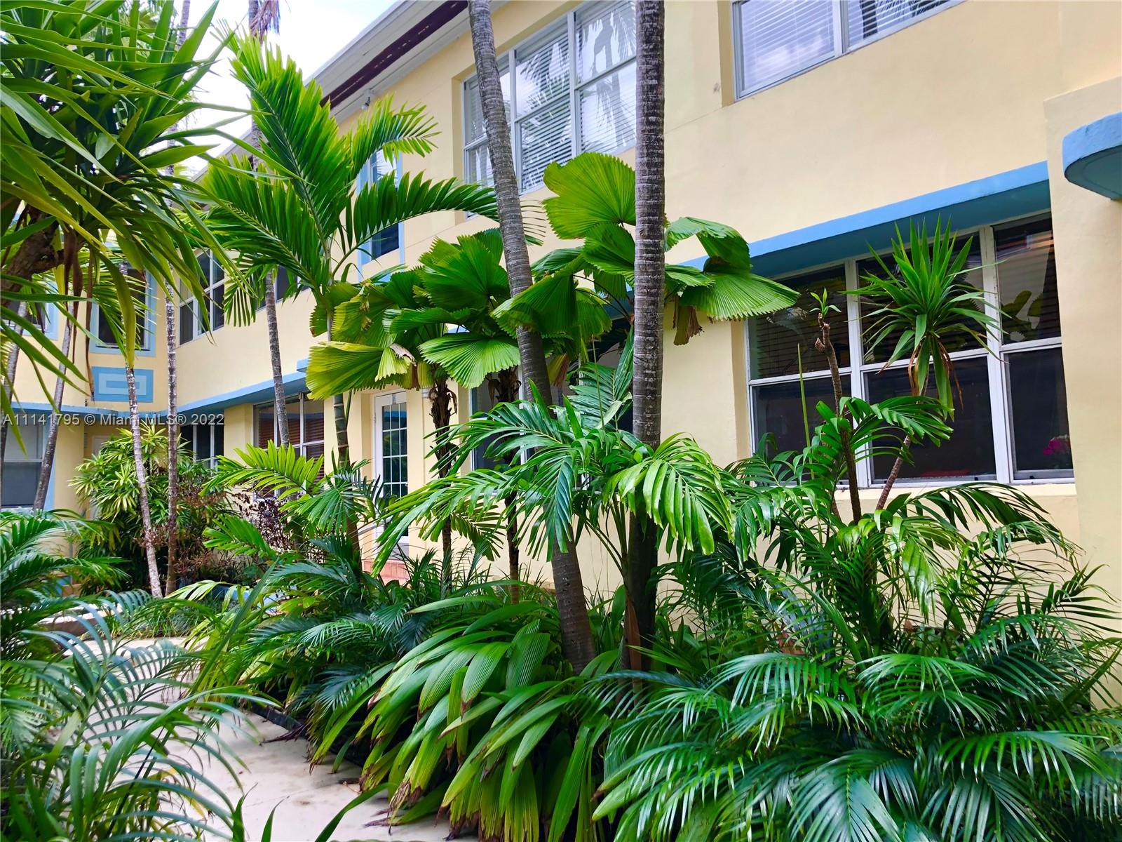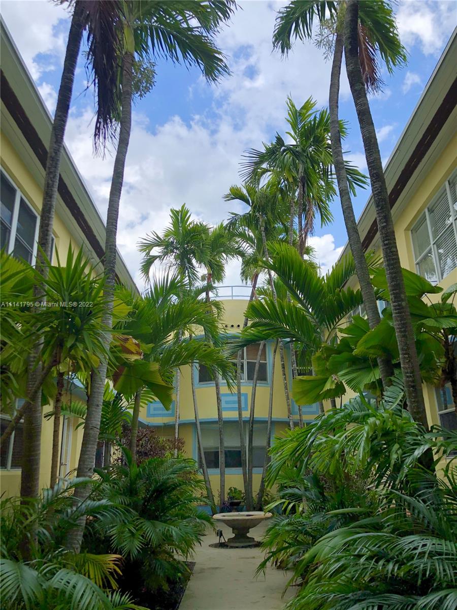 Art Deco charmer! Nestled inside a tropical oasis setting, this impeccable 1/1 home offers expansive windows overlooking lush landscaping and receives natural light. Updated kitchen, quartz & butcher block counters, Fisher-Paykel gas cooktop-electrical oven stove perfect for the gourmet chef. New European style fridge, Bosch dishwasher, hardwood floors, marble kitchen and bath floors. Newer AC, tankless water heater and closet built-ins. Secured boutique building, well maintained, 2 beautiful courtyards with BBQ area, outdoor seating and bike storage inside common area. Excellent location conveniently located within walking distance to Flamingo park, Lincoln Road, Whole Foods, restaurants, beaches. Has 40 year recertification and substantial reserves. W/D can be installed inside unit.