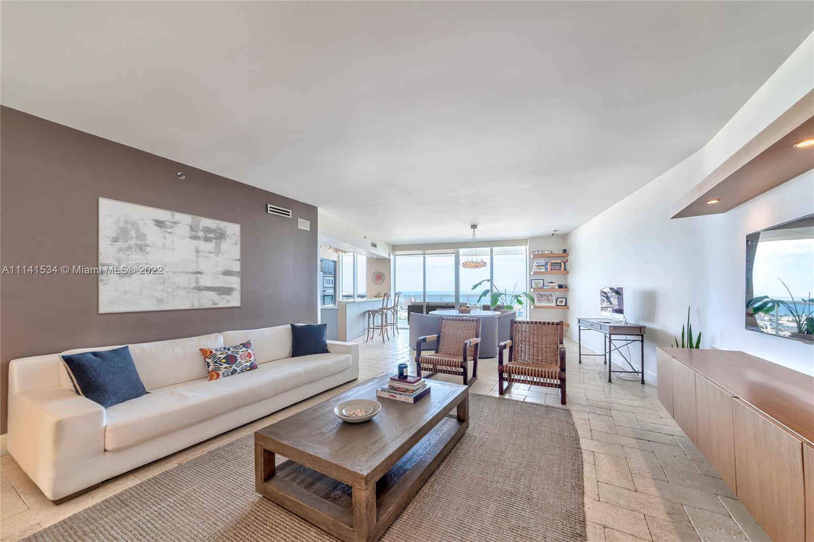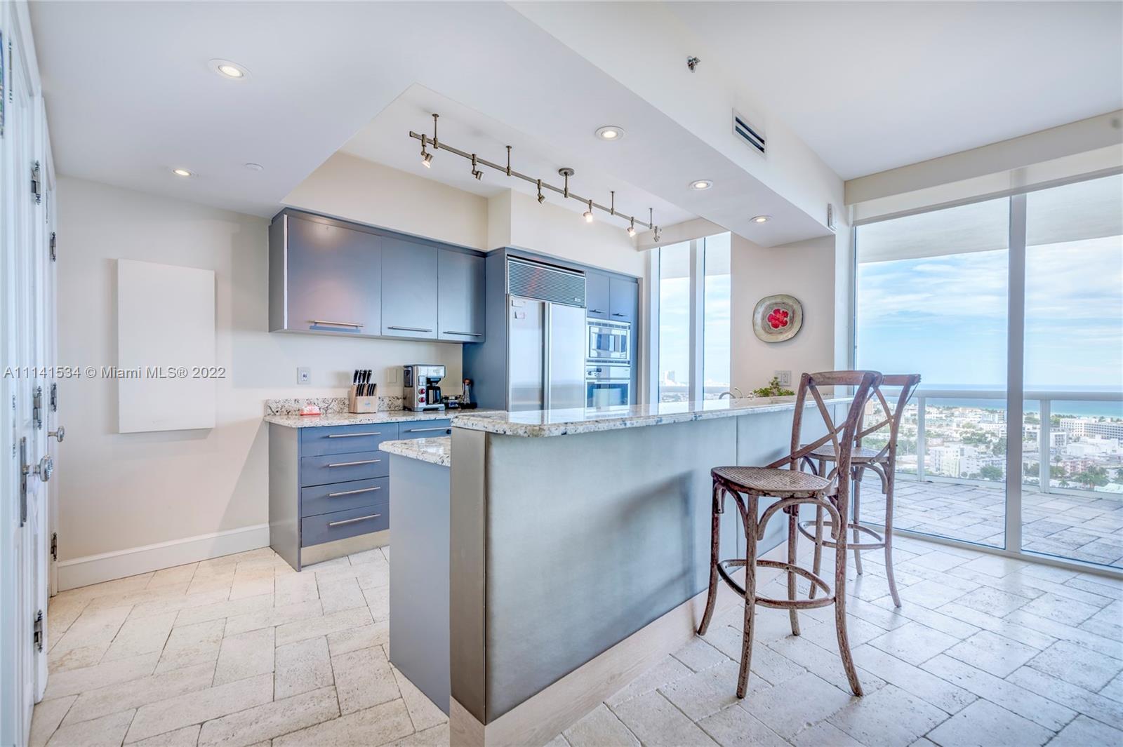 Enjoy lower Penthouse living at South of 5th’s iconic Murano Grande with sweeping 270 degree views of the Atlantic ocean, Miami Beach and Biscayne Bay. This generously laid out 2-bed/2-bath corner offers floor-to ceiling windows throughout, imported limestone flooring and an updated open-kitchen featuring custom cabinetry, granite counters and Miele & Subzero appliances. Unique dual Sunrise and Sunset terraces offer a combined outdoor living space of nearly 500sf. Fitness center, tennis courts, pool with towel service, 24-hour front desk, concierge and valet.