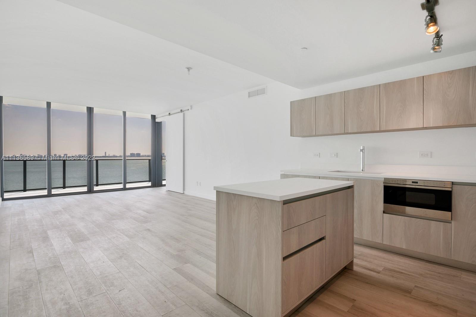 This spacious Bayfront 3 Bedroom 3.5 Baths + Den is Best value in the entire building and located steps from the Design District and 5 minutes from Miami Beach and right on the water. Flow through unit with light and cream cabinetry is located on the 7th floor with no neighbors abovw and direct access to the pool and spa with terraces in the very upscale One Paraiso building completely designed by Piero Lissoni. Two unit offers a breathtaking view of the Biscayne Bay and Miami Beach. This very large unit has over 1680 sqft + 350 sqft outside space to entertain With a private elevator entry and upgraded finishes and op of the line appliances and upgraded closets and electric blinds. The building offers unique amenities such as 3 pools tennis courts, full service spa, to name a few