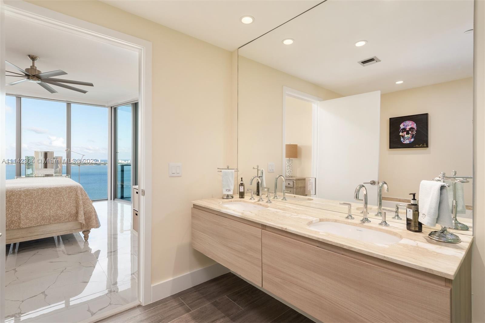 Impeccable direct Bayfront residence at Biscayne Beach! 2 bedrooms + proper office/den, 3 full baths & private foyer. Enjoy Biscayne Bay & Miami Beach views. Gorgeous porcelain flooring throughout. Miele & Subzero appliances, Snaidero kitchen, white quartz countertops. Tennis/Basketball courts, fitness center, Spa, Sauna and steam rooms, private beach club w/ day beds, lounges, & individual cabanas, recreation rooms, two pools & hot tub. Residence includes 2 parking spaces and storage unit. Parking spots: 656T & 657T