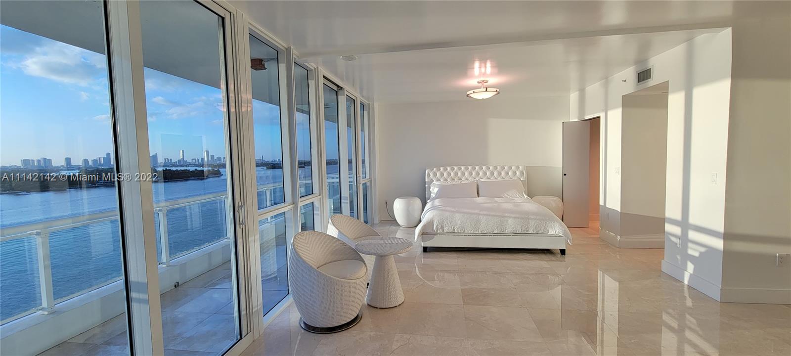 Stunning 12th floor unit in the prestigious Bentley Bay North tower with unobstructed city skyline & Biscayne Bay views. Only 4 units per floor, this 1/1 was converted into a fully open studio plan that is PERFECT for entertaining. (Unit can be rented 12 times a year. Enjoy it yourself & rent it when you are away to generate excellent income.) The renovated bathroom features double showers & double sinks. The kitchen was also opened to enjoy the direct sunset views. Marble floors throughout. The Bentley Bay amenities include a large pool with cabanas, gym, sauna & steam room, two garden hot tubs, BBQ area, 24/7 security. WIFI, Cable and valet included in HOA. Located walking distance to South Pointe Park, the South Beach Marina, Whole Foods, and West Avenue restaurants & shops.