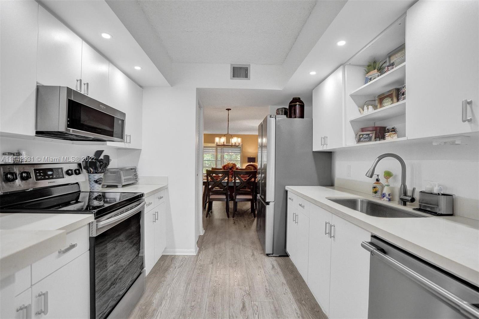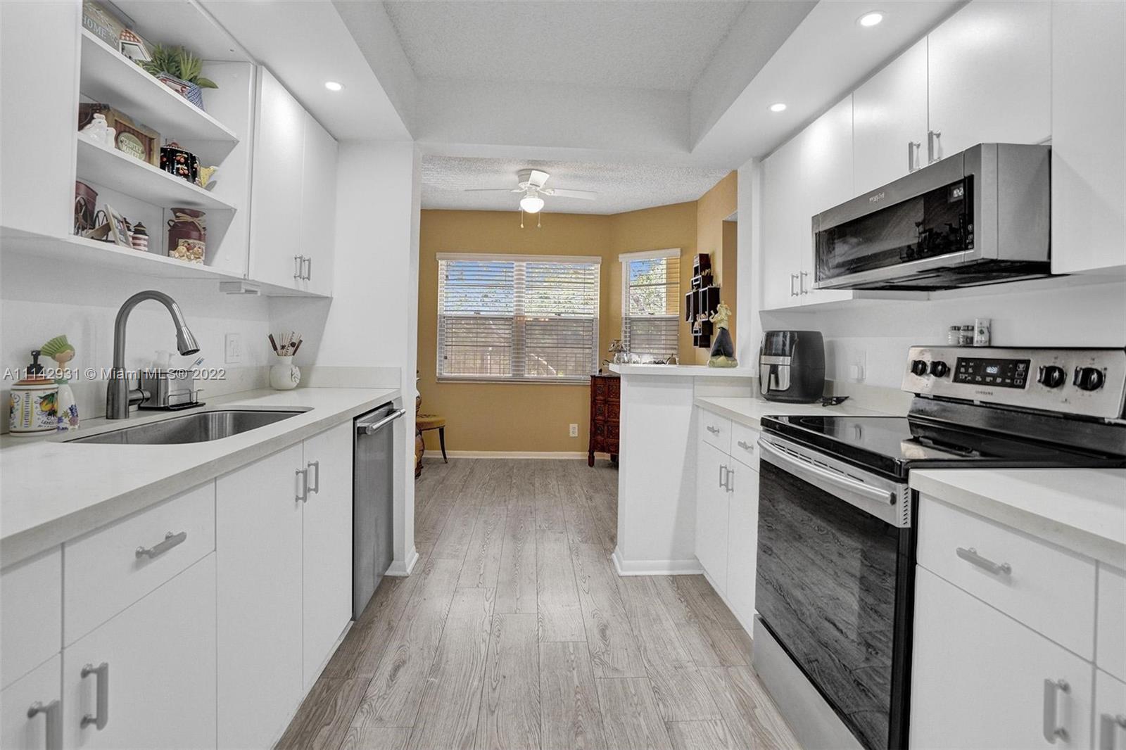 Remodeled larger 2 bedroom 2 bath third floor condo with great golf and water views. New stainless steel appliances, unit freshly painted, new porcelain floors throughout, and remodeled bathrooms. Large walk-in closets in both bedrooms. Washer and dryer conveniently located inside the unit; assigned parking & plenty of guest parking. Century Village is one of Pembroke Pines’ most desirable active adult communities, enjoy resort style living, with endless amenities: million-dollar clubhouse, transportation, 2 fitness centers, 24-hour security, 8 swimming pools, tennis court, movie theater, billiards, pharmacy, cafe, golf and so much more! Water, sewer, trash, basic cable, and internet included.