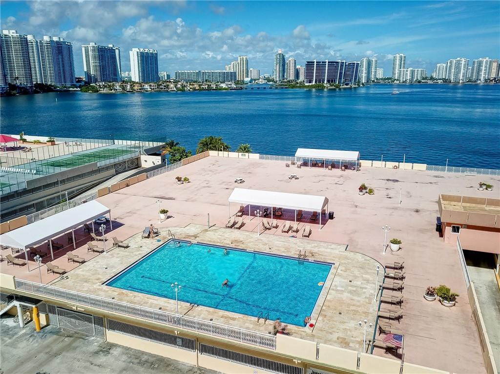 Your chance to live near the water in Sunny Isles Beach, just minutes to the ocean, shops, parks and restaurants. 19th Floor Unit with spectacular views from the balcony of the bay and ocean. This well kept home features large living area and bedroom with access to amazing views from each room. Unit comes fully furnished, including two sofa beds. Cable, internet and water are included with HOA, as well as maintenance for A/C unit and plumbing. 24 hour security in lobby.