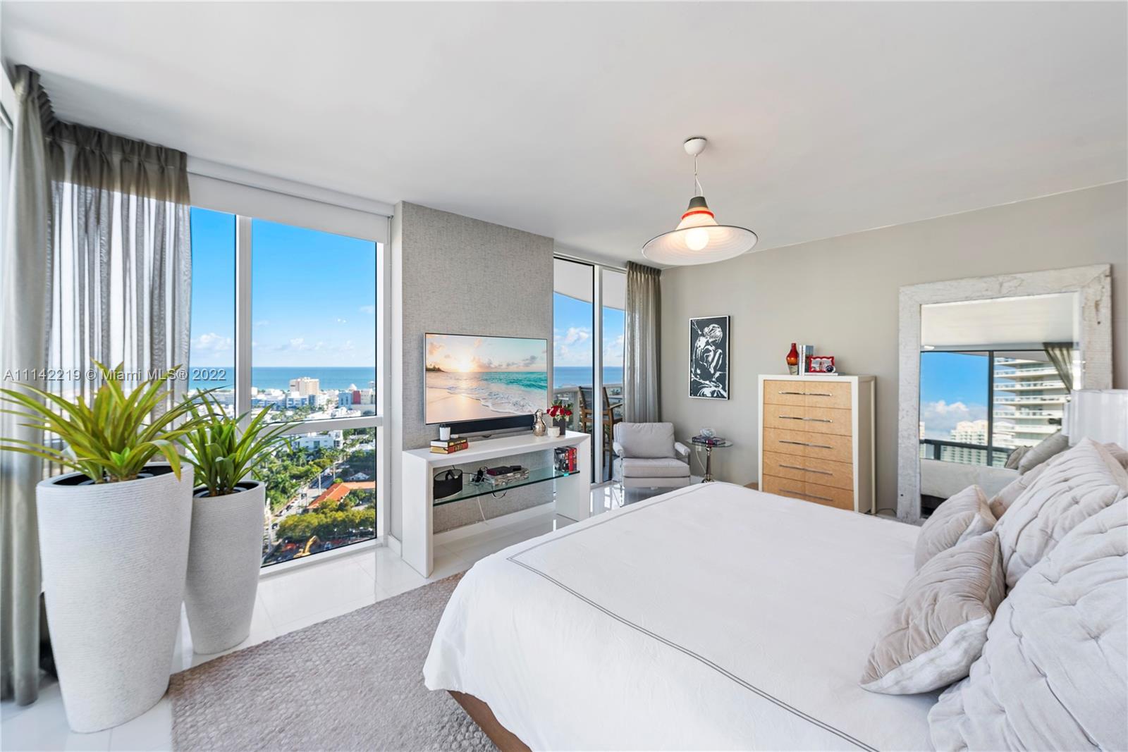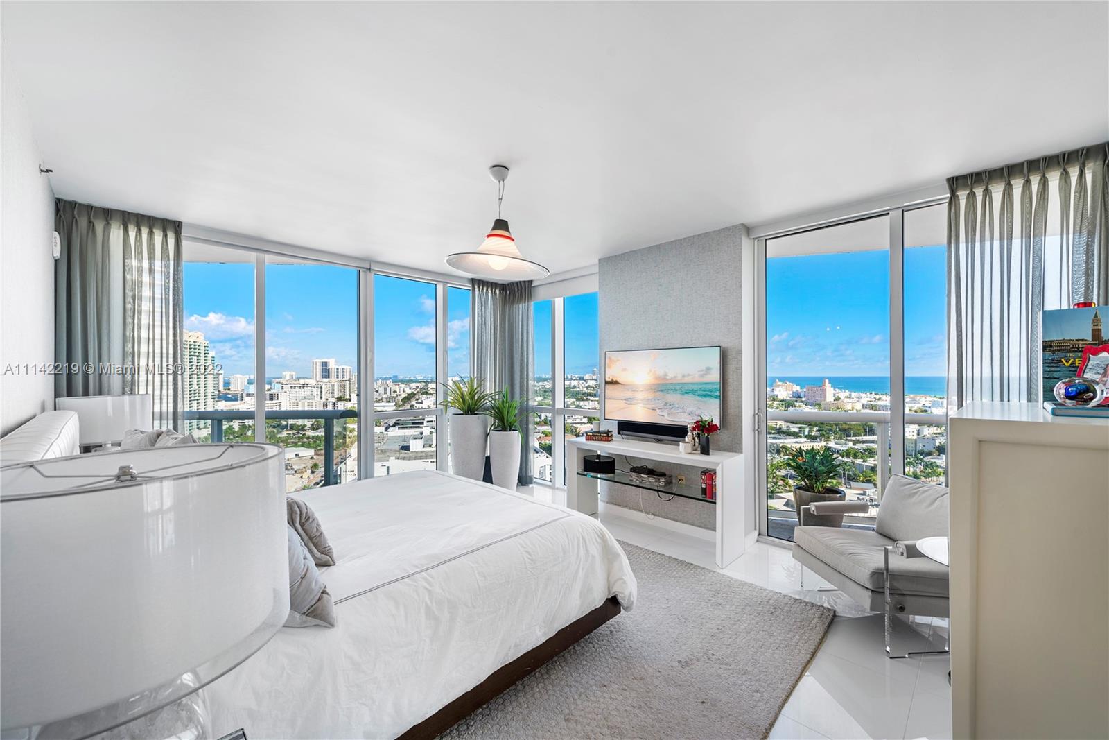 Enjoy high-rise living in SoFi's iconic Murano Grande. This stunning, extensively remodeled 2/2 residence offers a generous open floor plan. Custom soffits with down lighting create an intimate setting throughout the living room. Features a sleek kitchen, Porcelanosa tiles throughout the bathrooms and balconies, California closets, and more. A stylish design adorned with Philip Jeffries wall coverings create a modern and luxurious atmosphere. Complemented by one-of-a-kind light fixtures and mirror purchased from the Isle of Murano, no detail has been left unturned in this captivating residence. Floor-to-ceiling windows throughout and a combined 416 SF of terraces make it easy to enjoy sweeping 270-degree views of the sunrise over the Atlantic Ocean, Miami Beach and Biscayne Bay.