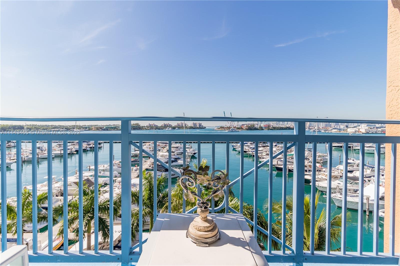 Unique blend of boutique living with all of the benefits of the full service high rise. The Flats at Yacht Club, one of just 8 special residences directly fronting the Miami Beach Marina and Biscayne Bay with with direct access from the Marina and separate from the main building. Perfect location with your garage parking right outside your door, swimming pool, tennis and barbecue just one flight up and the gym just two flights down. This top floor residence on the south east corner offers incredible views of the Bay and Marina from every room. Feels like living on a cruise ship. Open floor plan that includes a spacious bedroom, nice separation between dining and living areas as well as a den which makes for a perfect office or guest room. Pets welcome & monthly rentals allowed per condo.