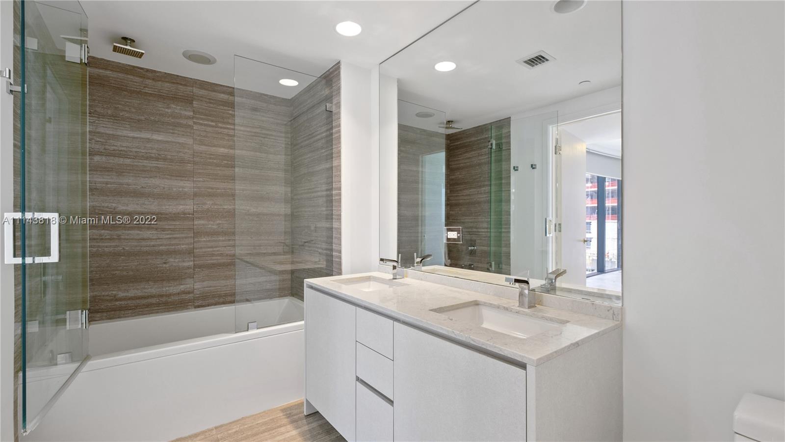Luxurious corner unit located at 1010 BRICKELL a 50-story, luxury high-rise. Light- filled 1 bed + den condo with Gourmet Style Kitchen, complete with top-of-the-line Smeg appliances. Open- Concept living area with porcelain tile floor. Master Room overlooking the Skyline. Additional Den perfect for a Home office. Amenities include a rooftop lounge, BBQ and swimming pool located on the 50th floor. Indoor swimming pool next to fitness center with yoga/aerobics room. Kids playground with bowling alley, ping pong, private social room for adults with virtual golf simulator, basketball and racquetball courts, outdoor running track. Spa includes warming hamam, hydrotherapy cold plunge pool hot Jacuzzi, massage rooms, sauna and steam room. Centrally Located .