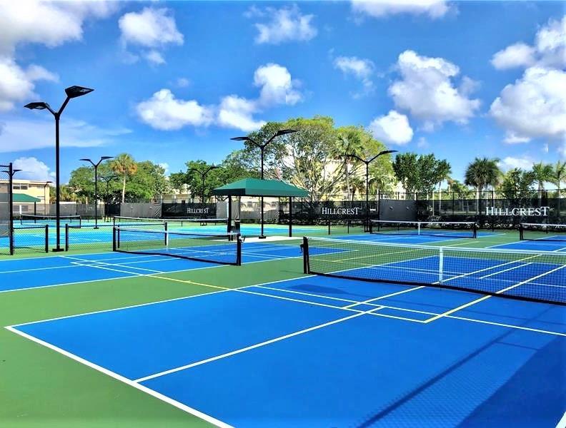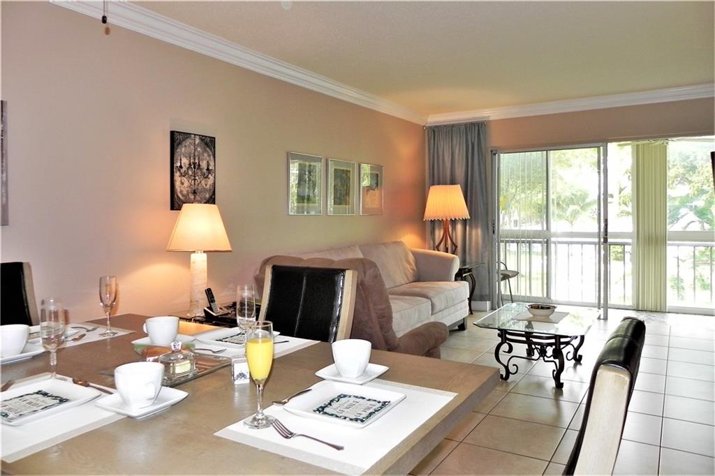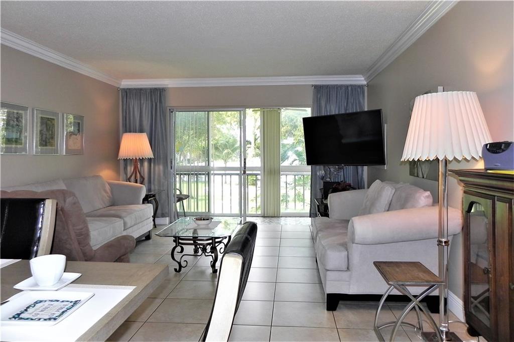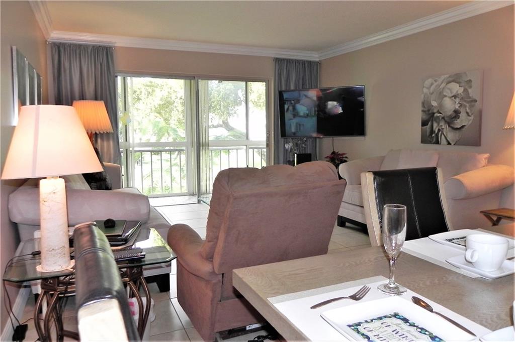 Absolutely lovely, completely furnished and equipped 2/2 w/double balcony overlooking pool and garden areas. Over-55 building. Enclosed balcony has screens and windows to let in the fresh air and keep out the rain. Open kitchen has ample pantry space. Tile throughout living areas & guestroom. Crown moulding in living/dining areas. Laminate flooring in master bedroom. Lots of closets and cabinet spaces. Large primary bedroom has a desk/vanity area and a walk-in closet. Walk in shower stall. Hall bath has tub/shower combo. Amenities include 4 pools, meeting room, fitness room, tennis & pickleball courts, Rentable clubhouse with indoor kitchen and outdoor bar/BBQ area. Minutes from downtown, Hollywood beach and airport. OK to lease seasonally after 2 yrs. No pets. 20% down per association.