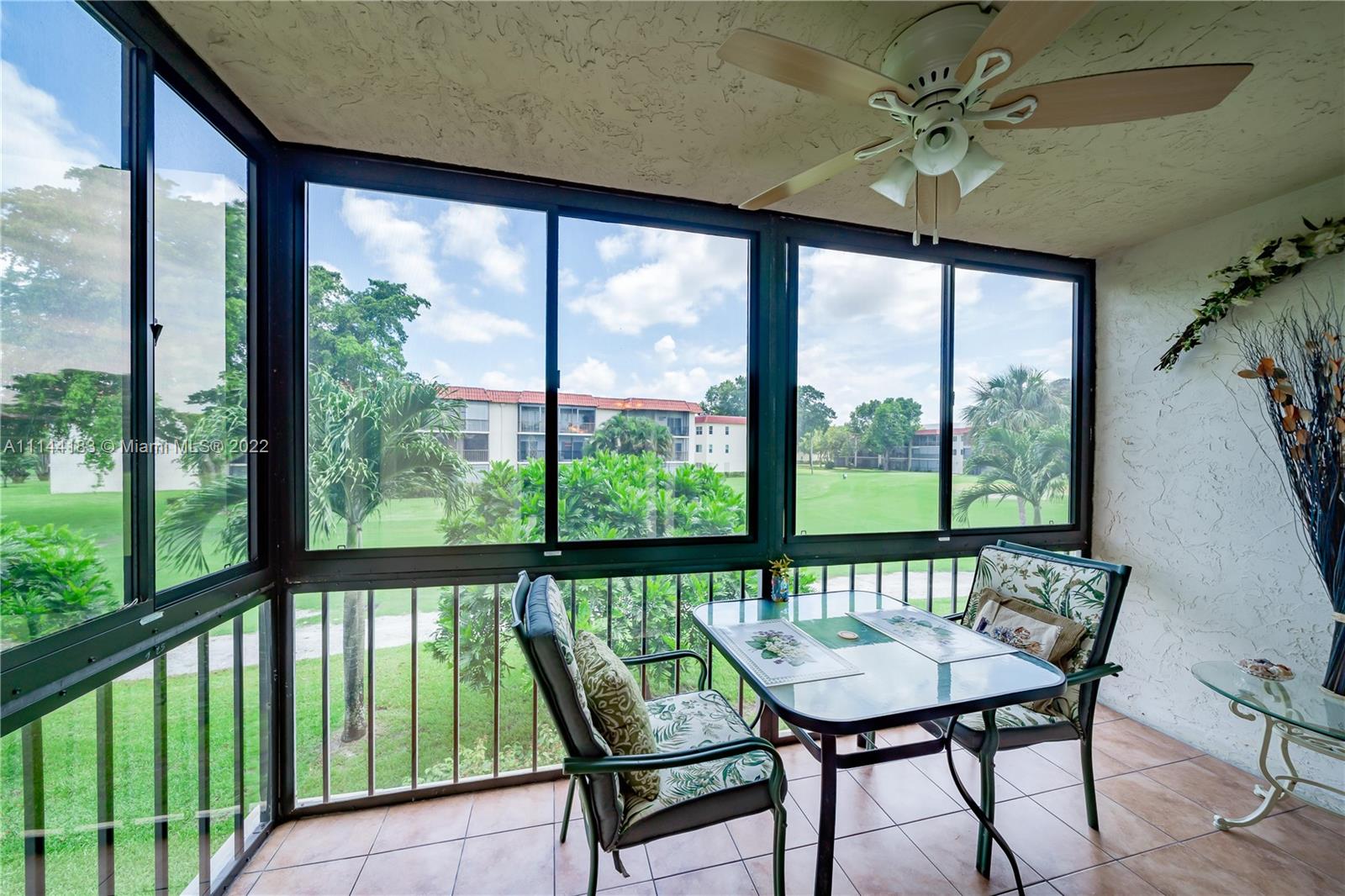 Turn key and tastefully upgraded 2 bedrooms 2 bathrooms with granite countertop and contemporary backsplash. Stainless steel appliances. High-end parquet wood flooring. Hurricane impact windows and an enclosed patio give you peace of mind. Knowing your property is safe and secure from any storm. Whether you're on the property or out of the country. Enjoy the neatly manicured Par 3 golf course from your enclosed patio. With the luxury of being in the air conditioning. Walk-in closets are located in both bedrooms. PAID REC LEASE. Live amongst the most affluent in the prestigious PET-FRIENDLY Hollybrook Golf & Tennis Club.