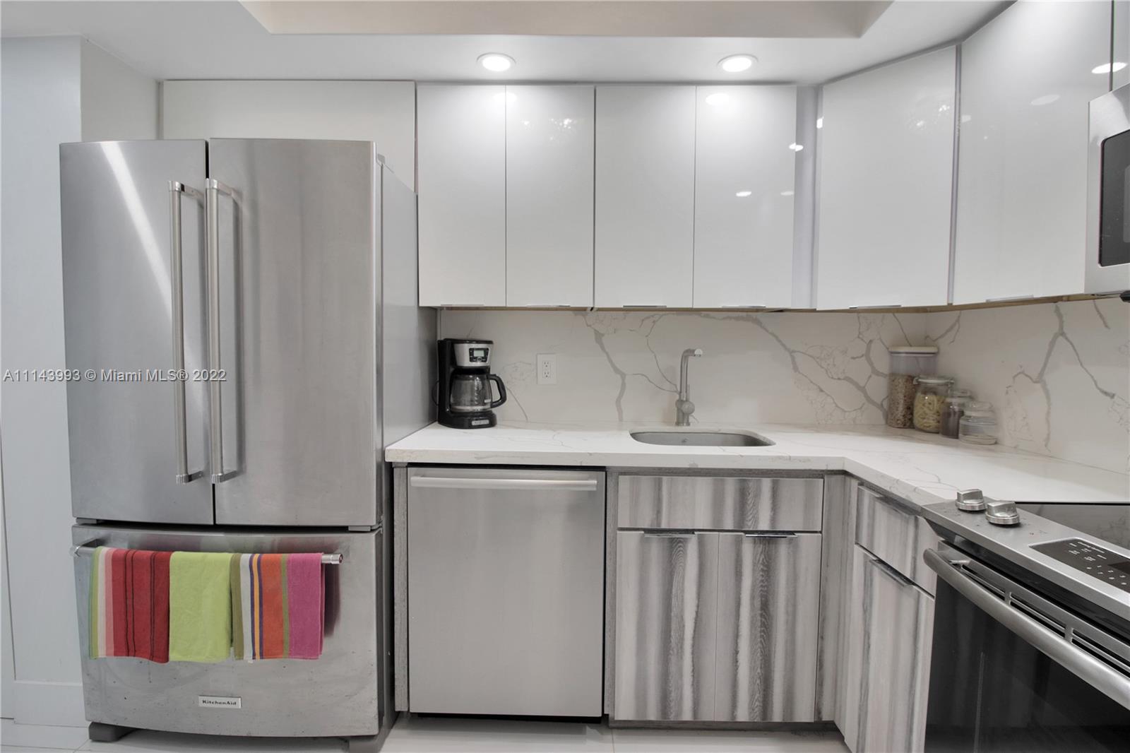 Stunning complete renovation with high-end tasteful finishes throughout. Features include large white tile, new impact sliding glass door and windows, smooth ceilings, new kitchen and appliances, new bathroom, spacious walk-in closet with built-in cabinetry, and a large open balcony. This move-in ready condo has a tree-line and open view of Miami Beach. The South Bay Club offers resort style living with a beautiful open air lobby, bay front pool deck with a hot tub and bbq area, fitness rooms, and community room. One assigned parking space included. Condo allows rentals (6 month minimum) and a small dog. Prime location across the street from the new park. This is the perfect place to live year-round, use as a vacation home, or even an investment property. Condo has dock slips.