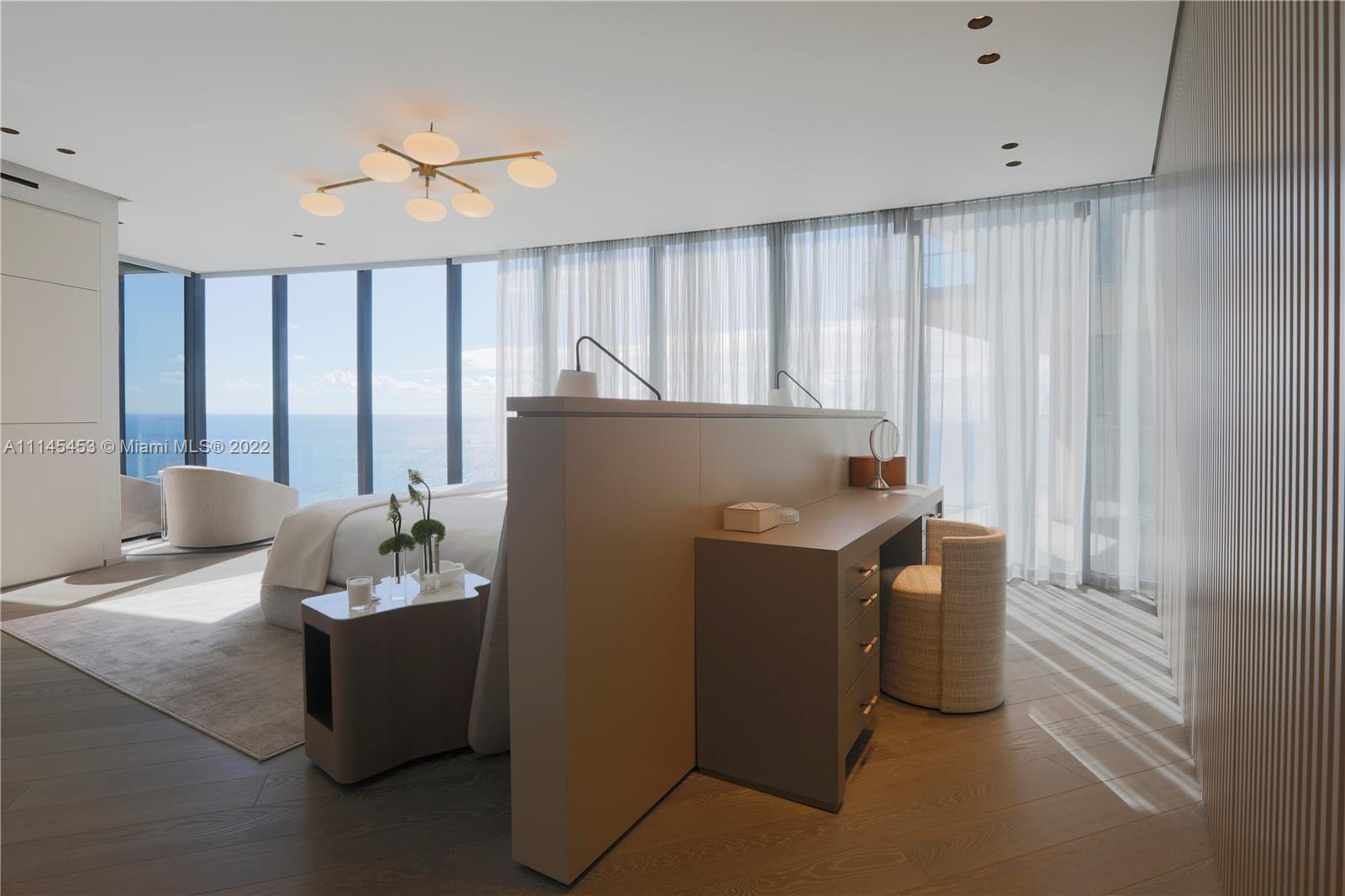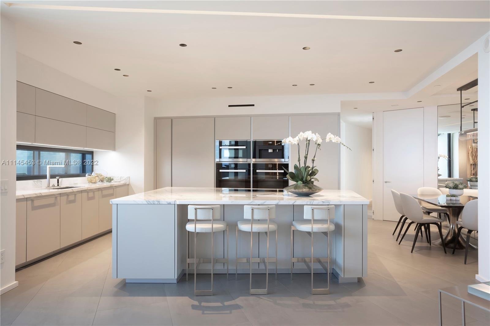 Elegant luxury meets impeccable interiors in this spacious Porsche Design Tower residence that features nearly 6,000 square feet and stunning ocean views. Nestled on Sunny Isles Beach, Residence 2501 boasts three large bedrooms, three and a half bathrooms, a formal dining room, a large den with built in office, gourmet Poggenpohl kitchen with dining area, fireplace, 2-car private garage, in-balcony pool, summer kitchen and more. Designed by renowned firm, Wecselman Design, this warm and inviting home offers extensive custom millwork by DeA Italiana, Mosa flooring, Sonos built in speaker system, custom doors with Olivari handles, stunning marble baths and spacious designer closets. No detail spared in this Tower where a glass-enclosed car elevator acts as its centrepiece.
