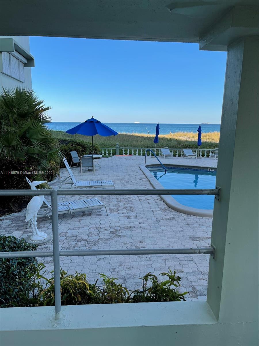Directly on the sand in Lauderdale by the Sea! Nice South-East exposure ground floor unit. Walk to lovely patio, pool and beach. Spacious 2 bed/2bath. Enjoy stunning ocean and garden views from large porch . Relax at the heated pool with an oceanfront pavilion and BBQ grills. Plenty of parking available. Covered parking and a very large exterior storage space. No age restriction. Close to shopping and fabulous Restaurants.