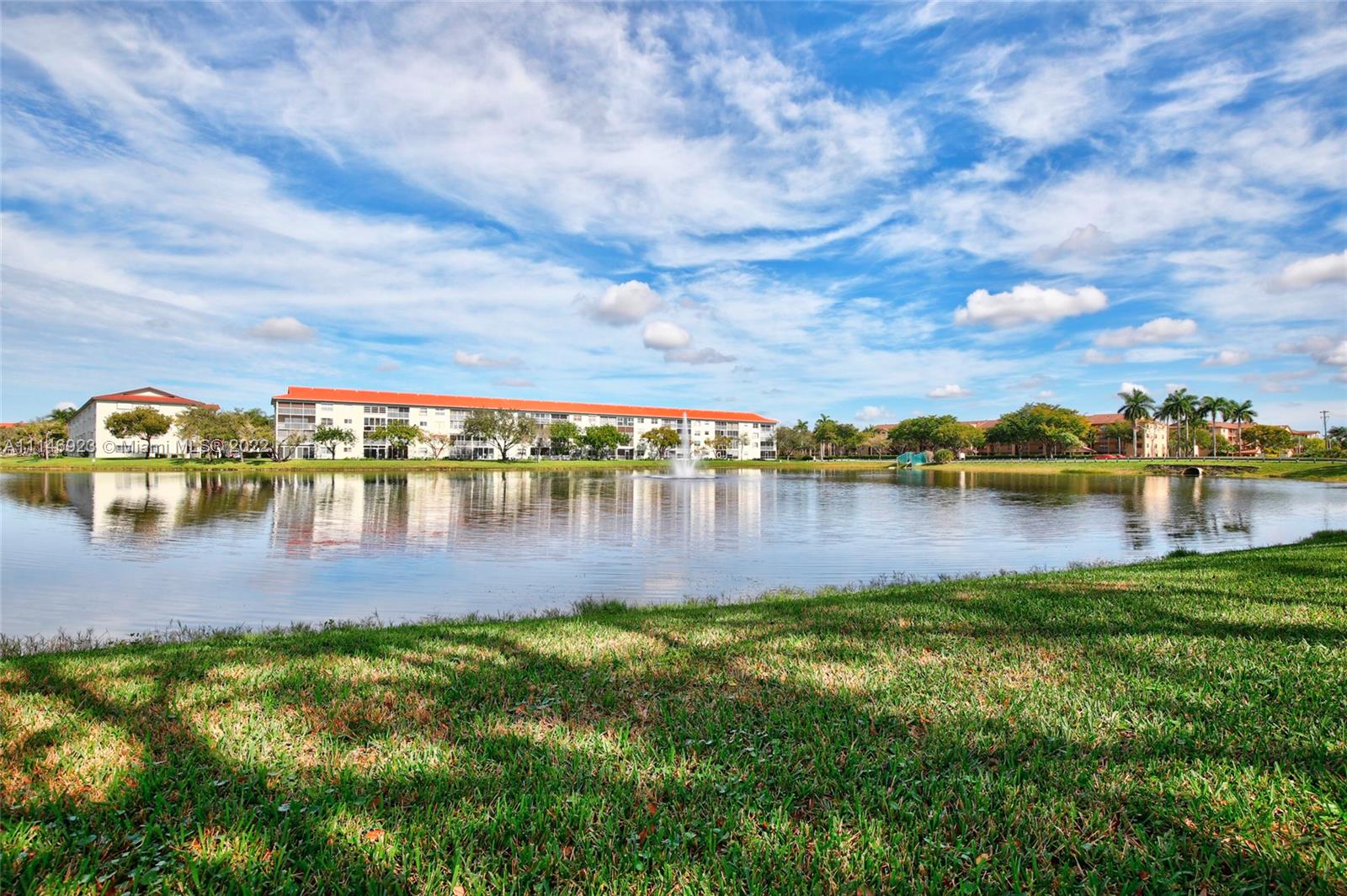 Well maintained and well kept 2 bedrooms 2 bathrooms "JASMINE MODEL" with a breathtaking unobstructed water view of the nearby running fountain. Hurricane accordion shutters all around. The unit is equipped with a washer and dryer inside. Feel secluded and at peace with complete privacy on the enclosed patio. Glass patio doors allow you the luxury to enjoy the outdoors while enjoying the nice cool air conditioner from the comfort of the patio. Built-in extra storge. The satellite pool is conveniently located directly in front of the building. This building is also uniquely located near the residence gate for easy access into the community. This unit is located in one of the most desirable neighborhoods in the most exclusive 55 plus community in Pembroke.