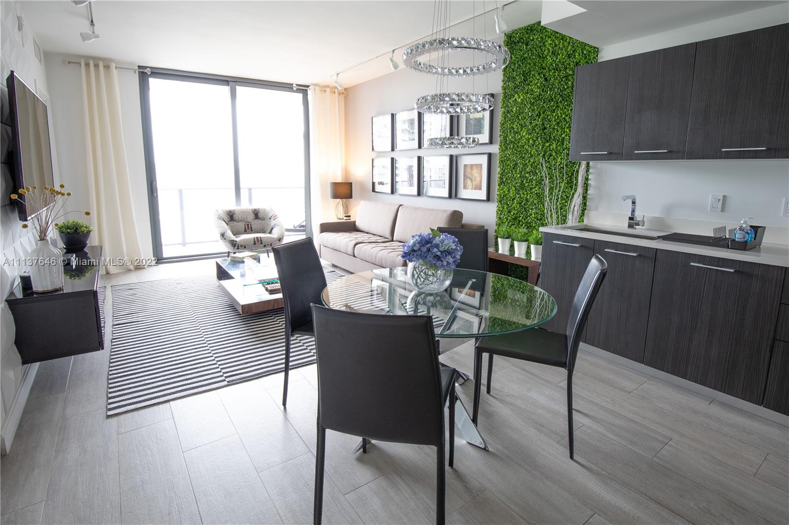 Turn-key unit beautifully designed and centrally located. Enjoy spectacular city views overlooking the vibrant Brickell City center and Brickell skyline. This comfortable one-bedroom and 1.5 bathrooms also has a cozy den designed as an office. Bedroom with walk-in closet and ensuite bathroom with tub with 2 sinks. The modern kitchen with stainless steel appliances opens to the living-dining area. Located close to the elevator in a private corner, this unit is equipped with all you might need, just bring your luggage. 2 valet parking spaces included. Walking distance to shops and fine dining. Amenities include a luxurious rooftop pool, 9th floor terrace & swimming pool and lap pool, business center, front desk attendance 24/7, secure elevator, valet parking and much more…Easy to show!