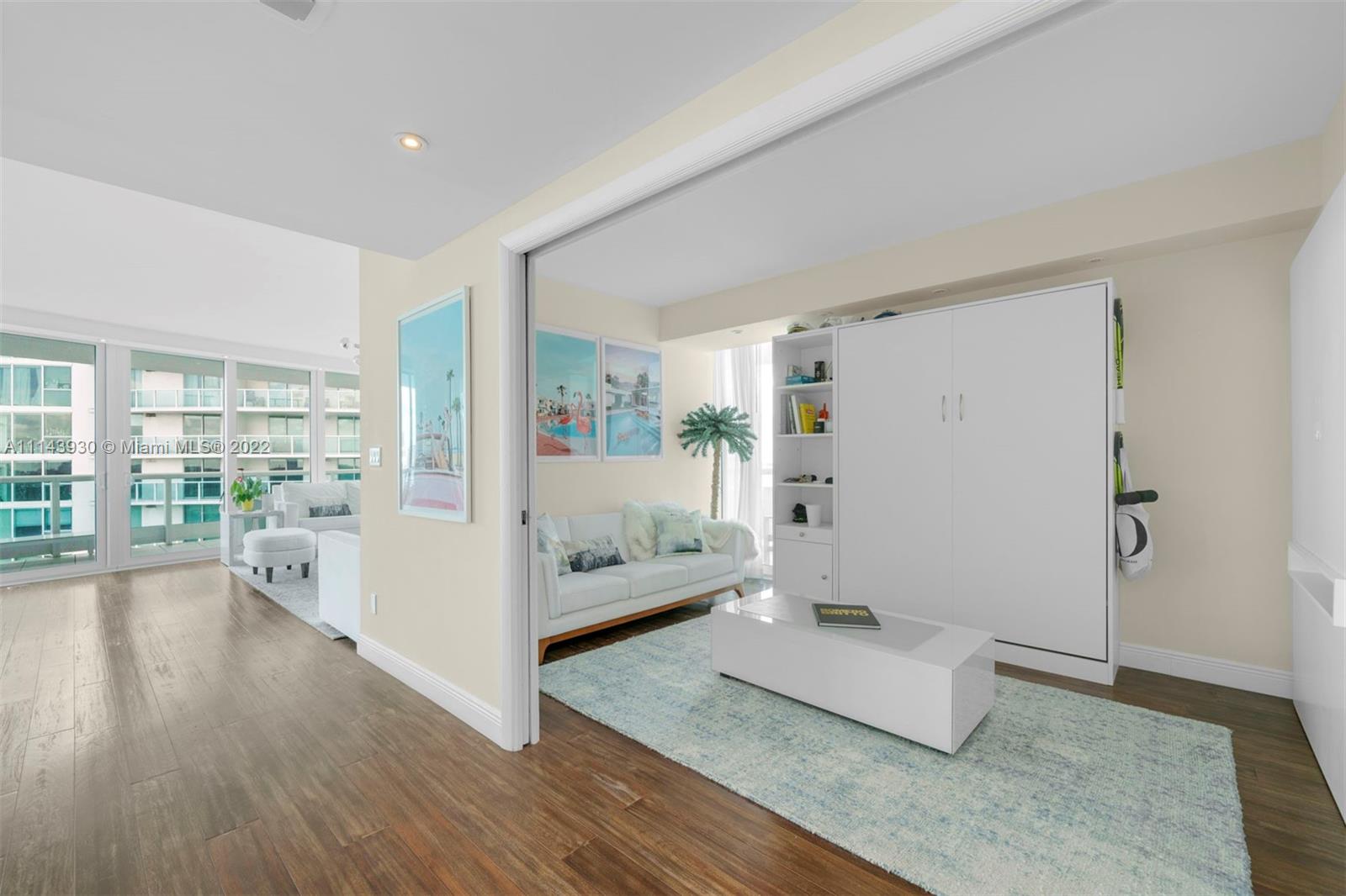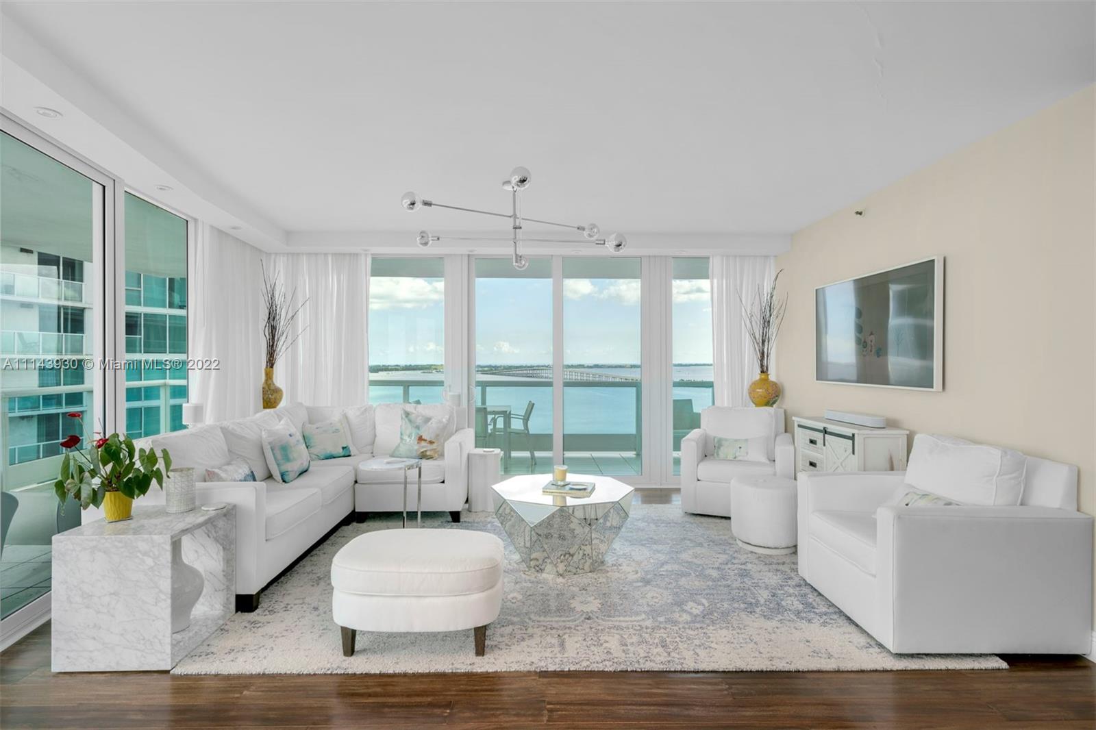 This 2 bedroom & 2 bathroom residence offers endless views of Biscayne Bay by day and the Miami skyline by night. Featuring Brazilian chestnut wood floors, a modern kitchen and 1,610 sq ft of living space complemented by a wraparound balcony. The open floor plan flows from living room into the dining space and kitchen. Second bedroom features built-in Murphy bed - easily convertible to a home office. The master suite boasts ample walk-in closets and an en-suite bathroom. The residence includes two parking spaces & a storage unit. Bristol Tower is a guard gated, luxury boutique building with semi-private elevators, 24hr concierge + security, valet parking, convenience store/cafe, tennis, heated pool, playroom, outdoor dining, car wash, electric car charging + latest fitness equipment.