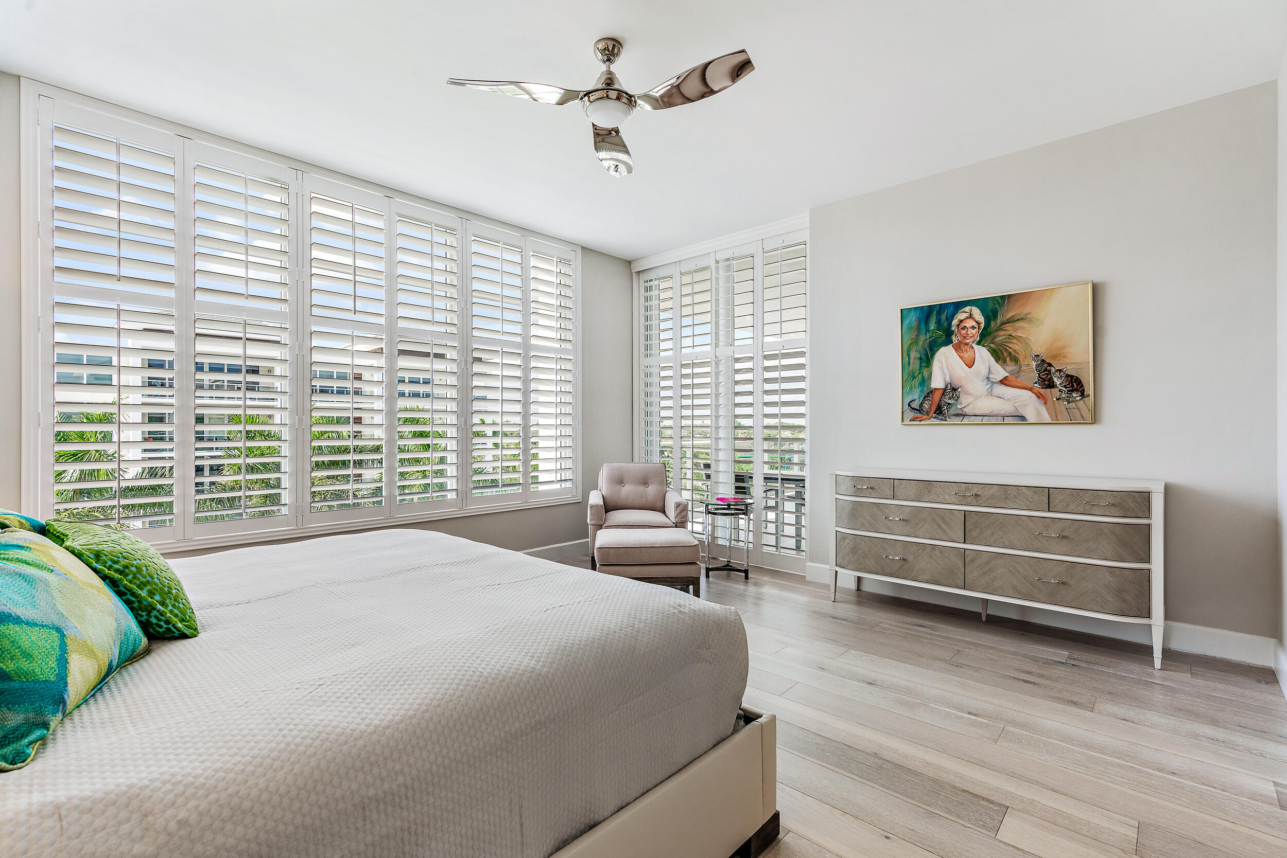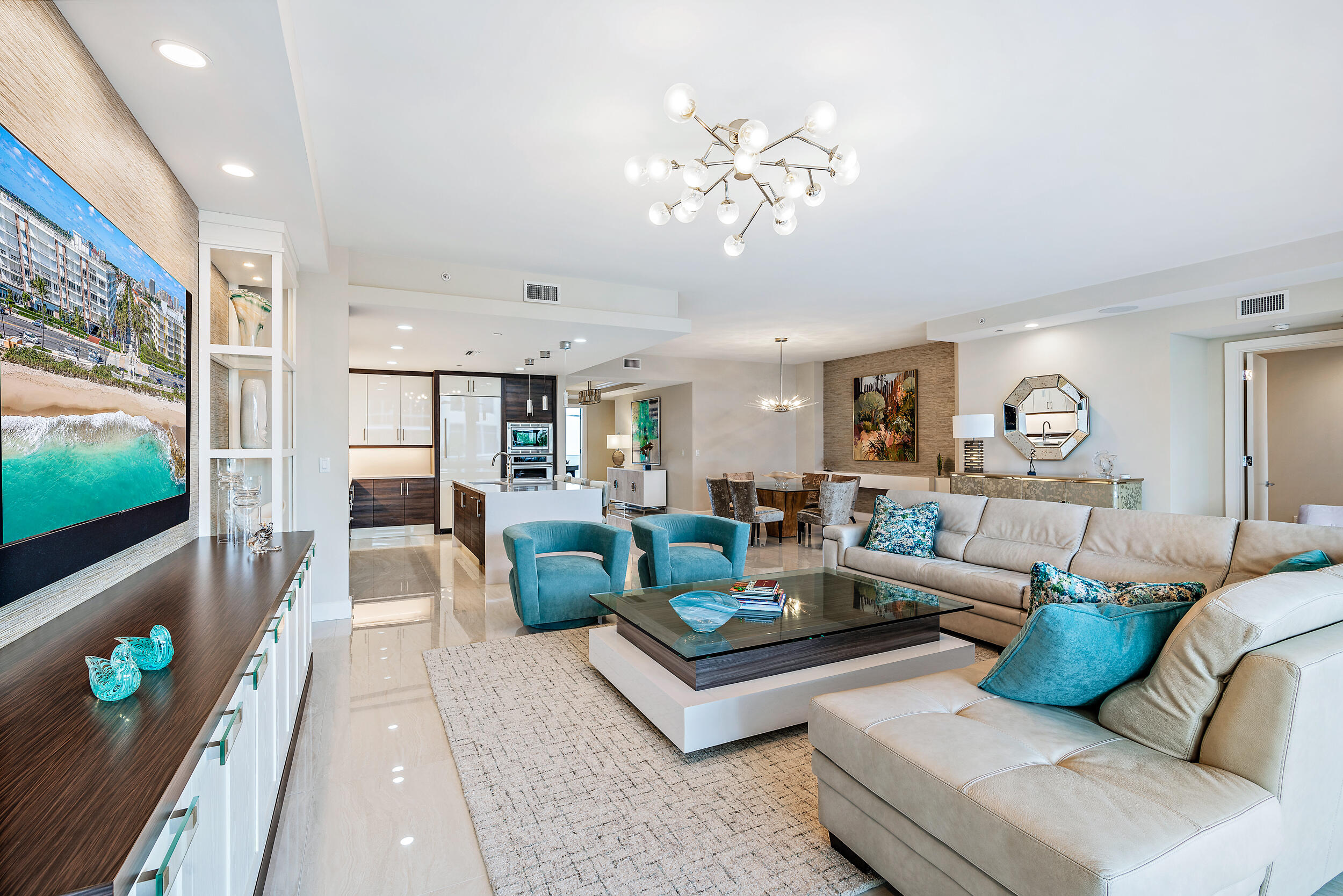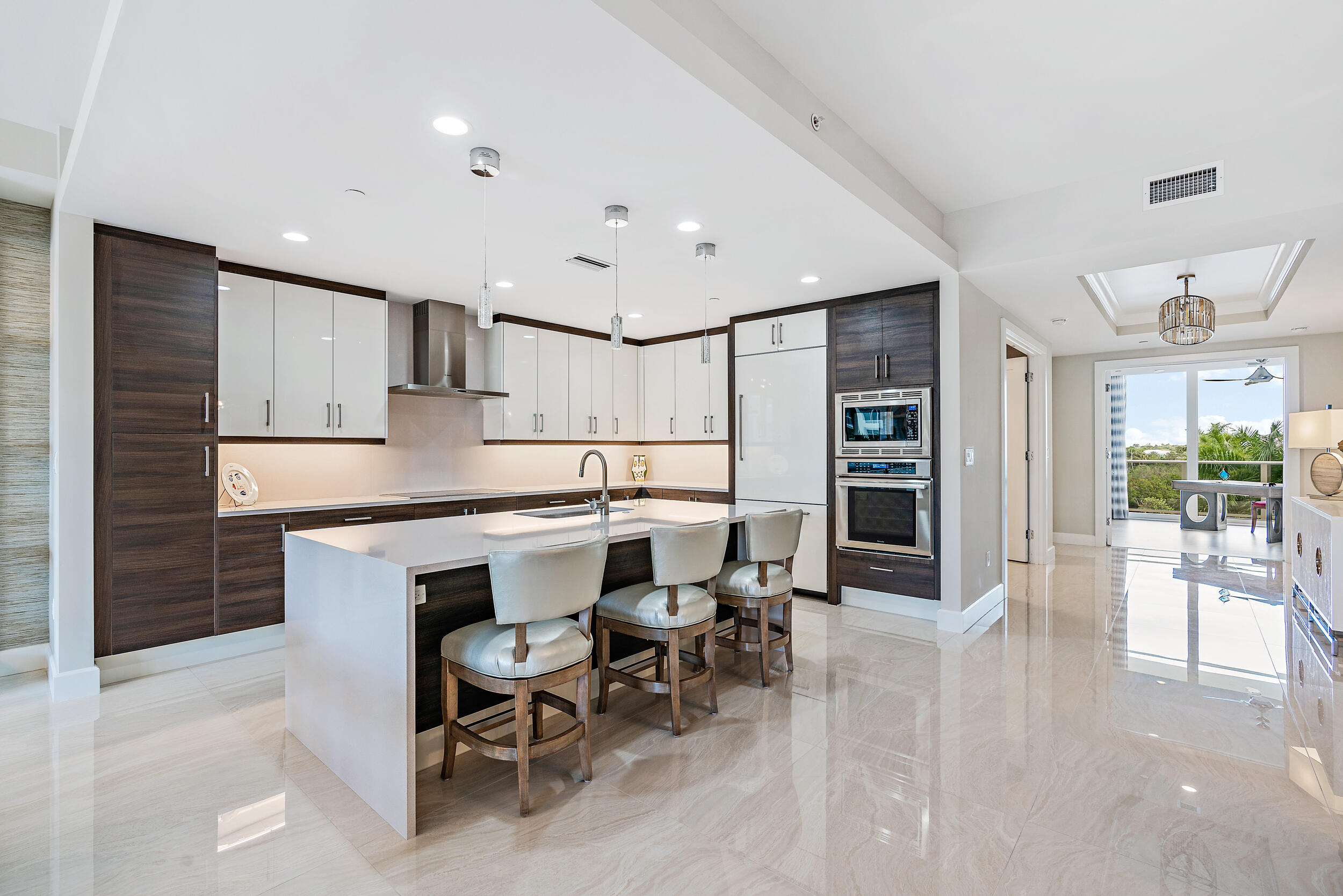 Location! Live in one of the best boutique buildings with first class concierge services. Enjoy relaxing sunrise & sunset views just blocks from the intracoastal & blue water beaches. Step from your privately keyed elevator to the open floor plan with plenty of natural lighting & designer built in features. Top of the line sound system, Thermador appliances, designer plumbing fixtures, built out closets & more. Move in ready & furnished. Azure offers state of the art concierge services w/ a 24/7 manned gate, full-service hurricane safe marina w/ dockage, fitness center, heated pool & spa, lockers & sauna, private climate-controlled wine room, business center, club & card room, catering prep kitchen, putting green & golf simulator, storage unit, 2 indoor assigned garage spaces & AC storage.