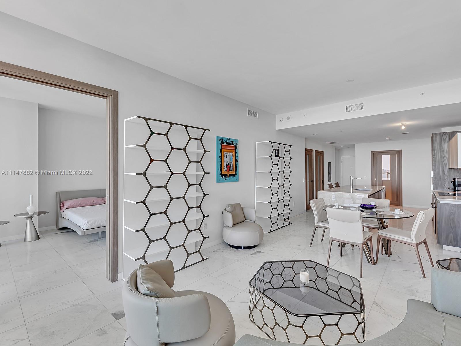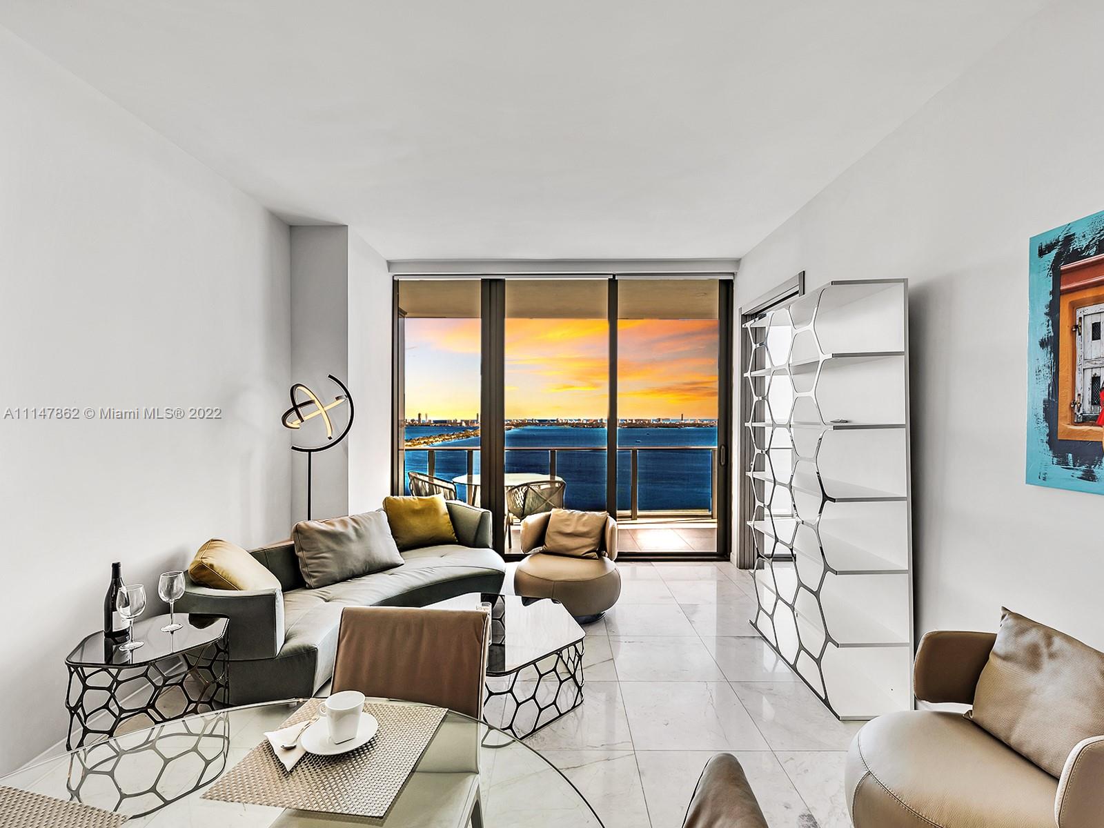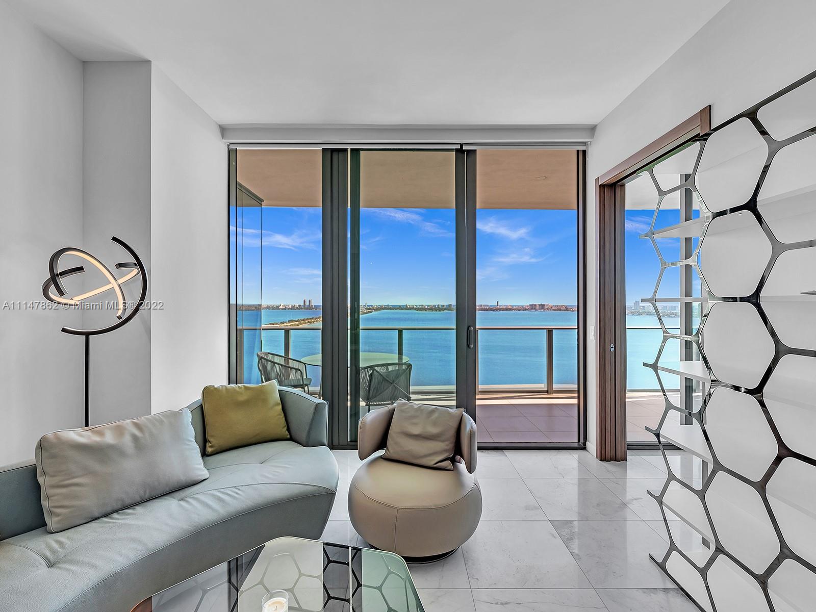 Luxury Living In This Magnificent Condo With Direct Unobstructed Views of Biscayne Bay. Private Elevator, Fully Furnished By High End French Designers ,Motorized Window Shades, Custom Closets, 10ft Ceilings, Marble Floors,Custom Italian Doors. Most Spectacular Amenities - Movie Theater, Bowling Alley, Spa, Gym, 100 Ft Lagoon Style Pool, Tennis Courts, Lounges, Library, Game Room, Business Center. Steps Away to Design District, Wynwood and The Beaches.