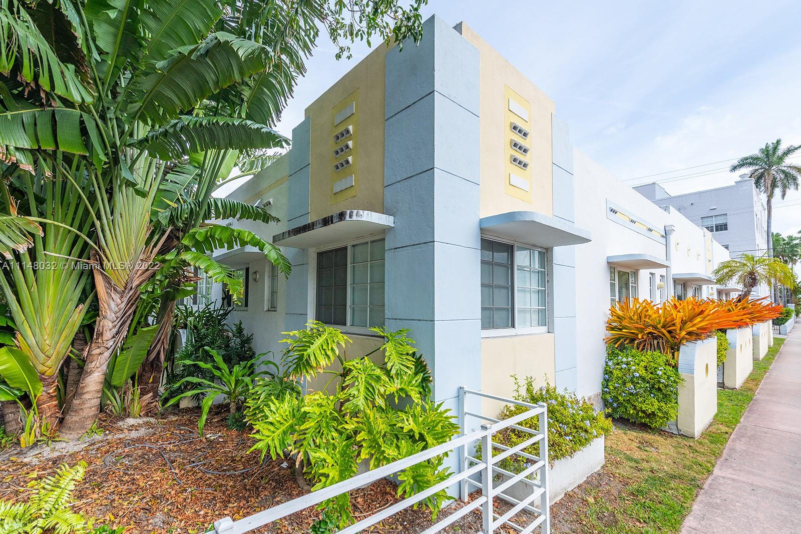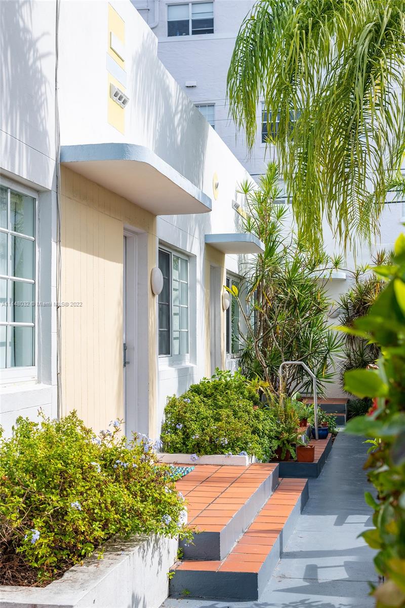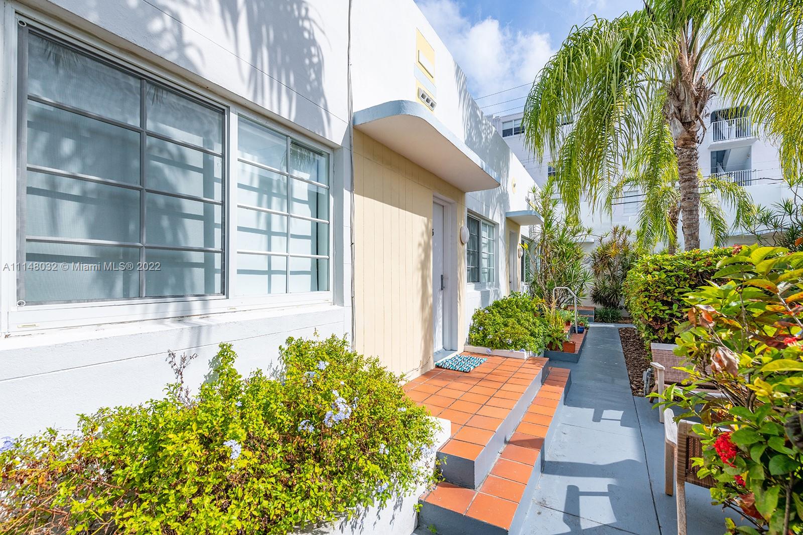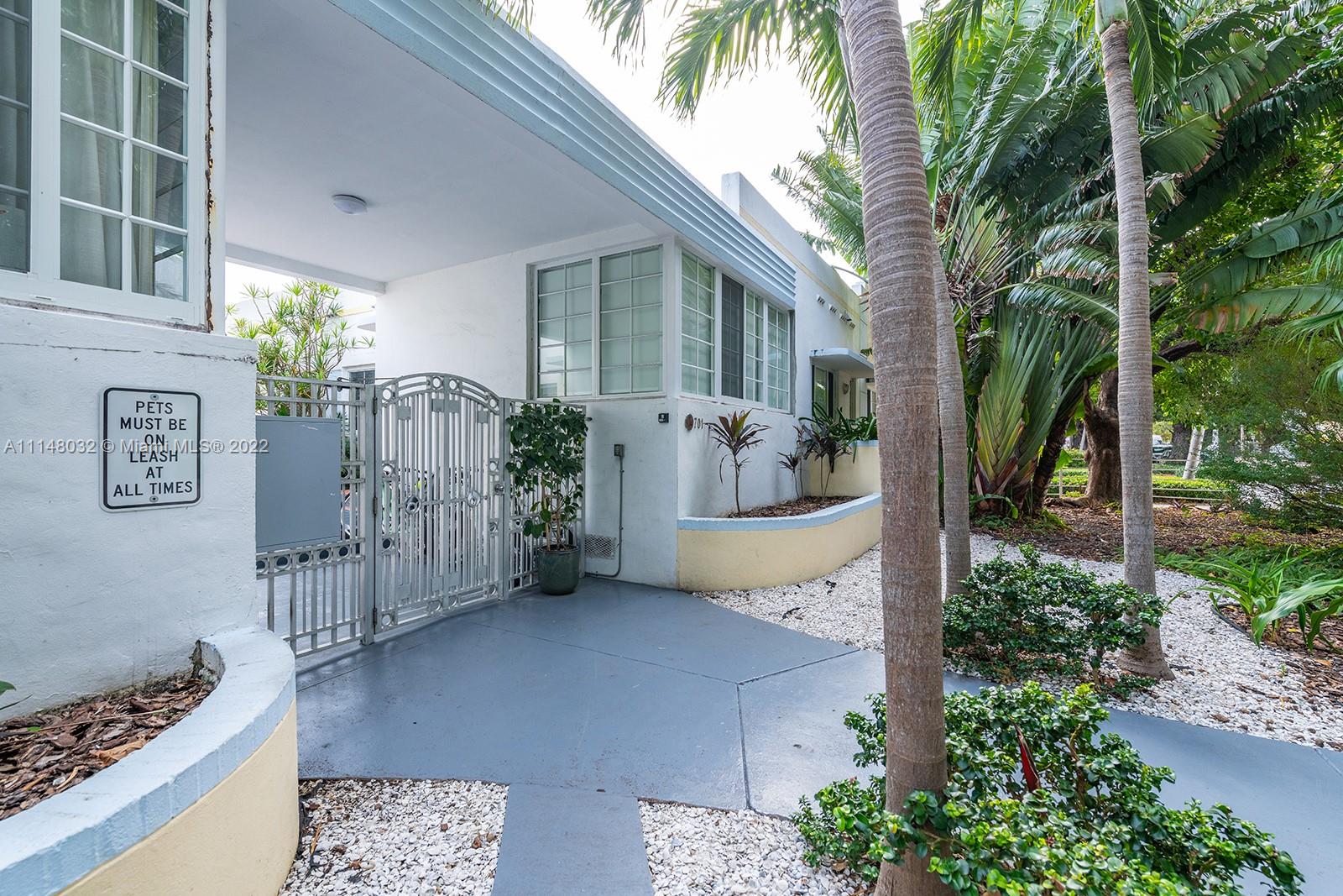 Modern renovated 2BR/2BA residence in delightful 1939 Art Deco building. Enter this charming 10 unit complex through a lush tropical courtyard. Single story villa unit with private entrance. This residence has been lovingly and thoughtfully renovated with modern finishes inspired by the stunning Art Deco architectural features of the building. European kitchen with custom cabinetry, glass cooktop, and drawer dishwasher. Spacious living room, separate dining room, wood floors, energy efficient roof and impact windows, generous closet space. Friendly neighbors share the tropical courtyard seating area. Wonderful location, steps to the ocean, South of Fifth neighborhood and Flamingo Park amenities: tennis, pool, gym. Well managed pet friendly building, maintenance includes reserves.