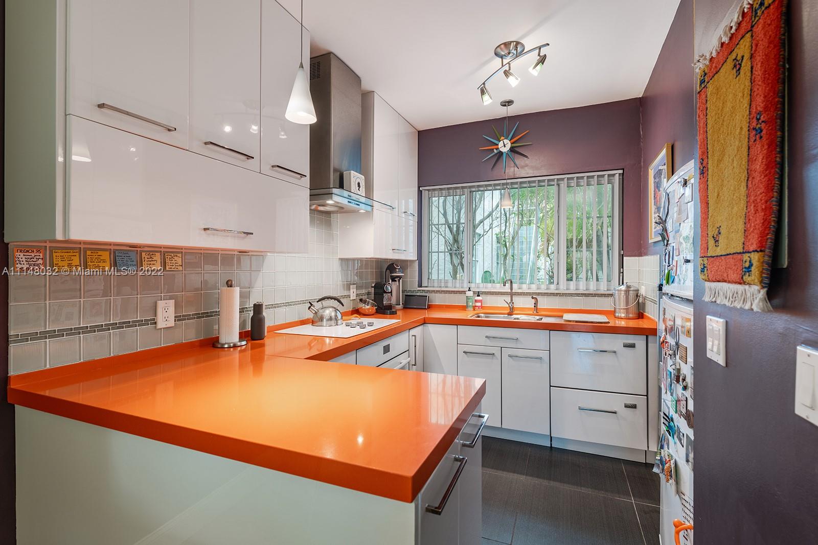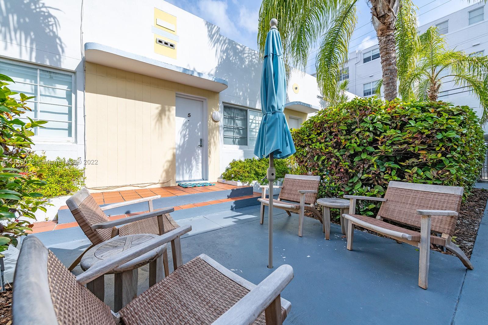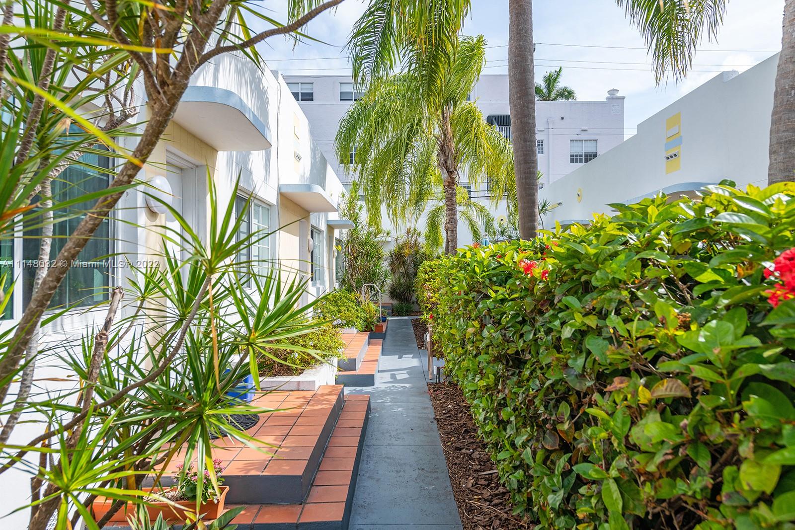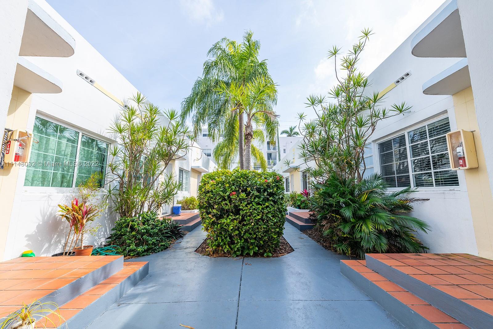 Modern renovated 2BR/2BA residence in delightful 1939 Art Deco building. Enter this charming 10 unit complex through a lush tropical courtyard. Single story villa unit with private entrance. This residence has been lovingly and thoughtfully renovated with modern finishes inspired by the stunning Art Deco architectural features of the building. European kitchen with custom cabinetry, glass cooktop, and drawer dishwasher. Spacious living room, separate dining room, wood floors, energy efficient roof and impact windows, generous closet space. Friendly neighbors share the tropical courtyard seating area. Wonderful location, steps to the ocean, South of Fifth neighborhood and Flamingo Park amenities: tennis, pool, gym. Well managed pet friendly building, maintenance includes reserves.