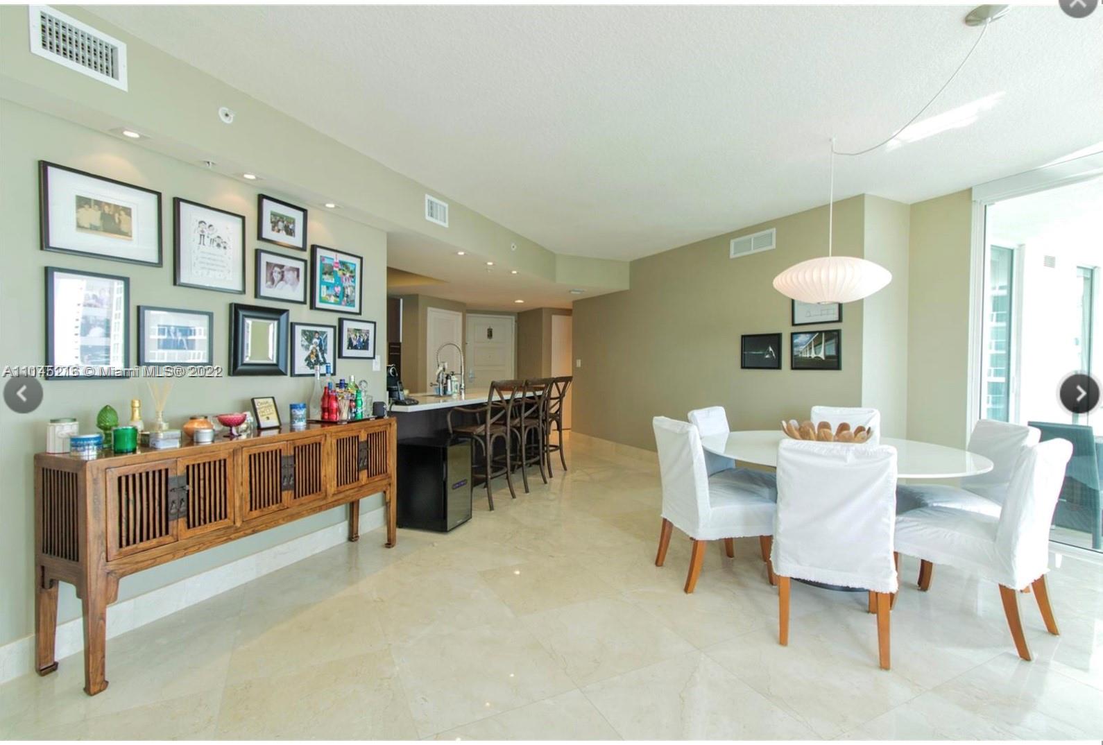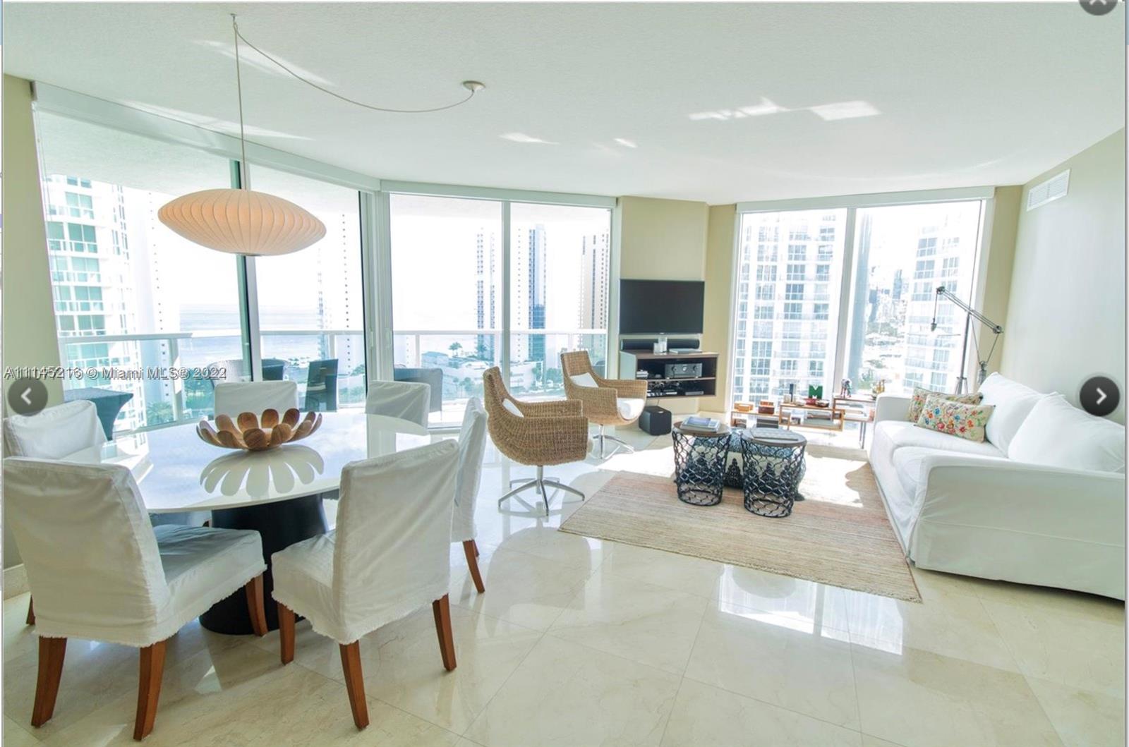 Wow! BEST LINE IN THE BUILDING, completely furnished, awesome views from this high floor to the city, ocean, and Intracoastal. Marble and wood floor through out of the unit, blinds in the bedrooms and living, curtains; kitchen with stainless steel appliances, master bedroom with walking closet; the amenities include pools, great exercise rooms, jacuzzi’s. Walking distance to the beach, close to Bal Harbour shops, Aventura Mall, restaurants and stores. Best rated school. Great opportunity. Come to see.