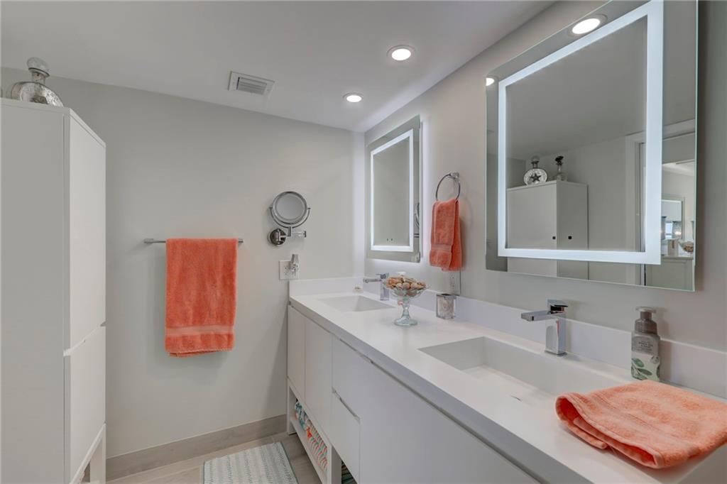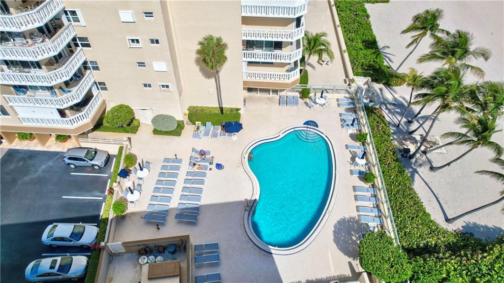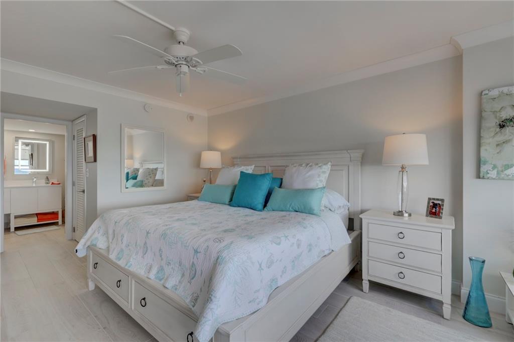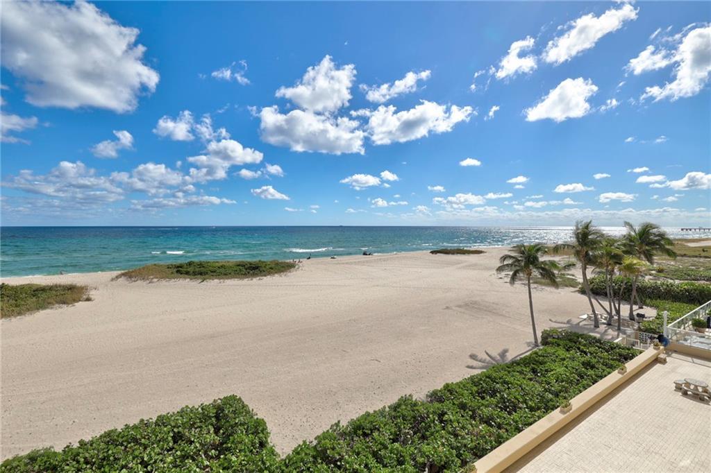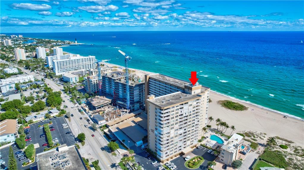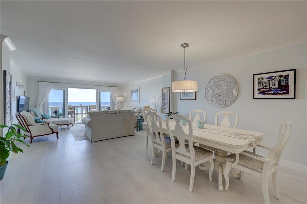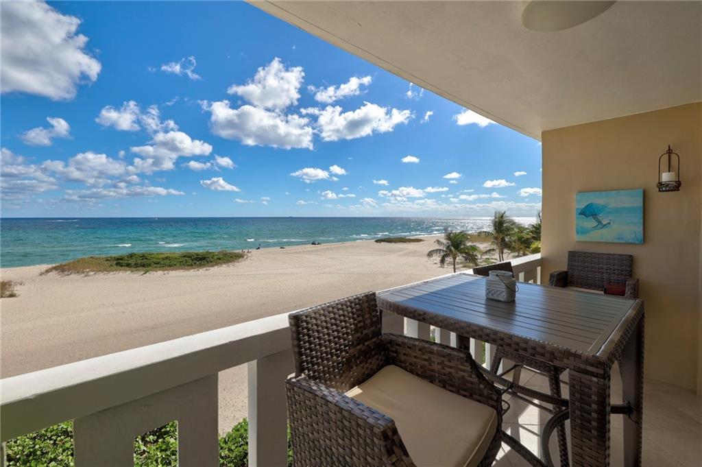 This 4th floor direct ocean unit is stunning! View of the ocean from the kitchen, living room, primary bedroom and the balcony! The owners spared no expense to make this unit paradise! The unit has been completely remodeled with modern light decor, ceiling lighting, mirror lighting in bathrooms, beautiful porcelain tile floors throughout, quartz counter tops and 6in molding and trim. The kitchen maple cabinetry is custom and has more than ample storage in the kitchen AND under the bar! The kitchen layout and bar are perfect for someone that loves to cook and entertain. Washer/Dryer full size stackable in unit tastefully incorporated into the cabinetry so hidden from view. Furniture not included in the Listing price but is negotiable.