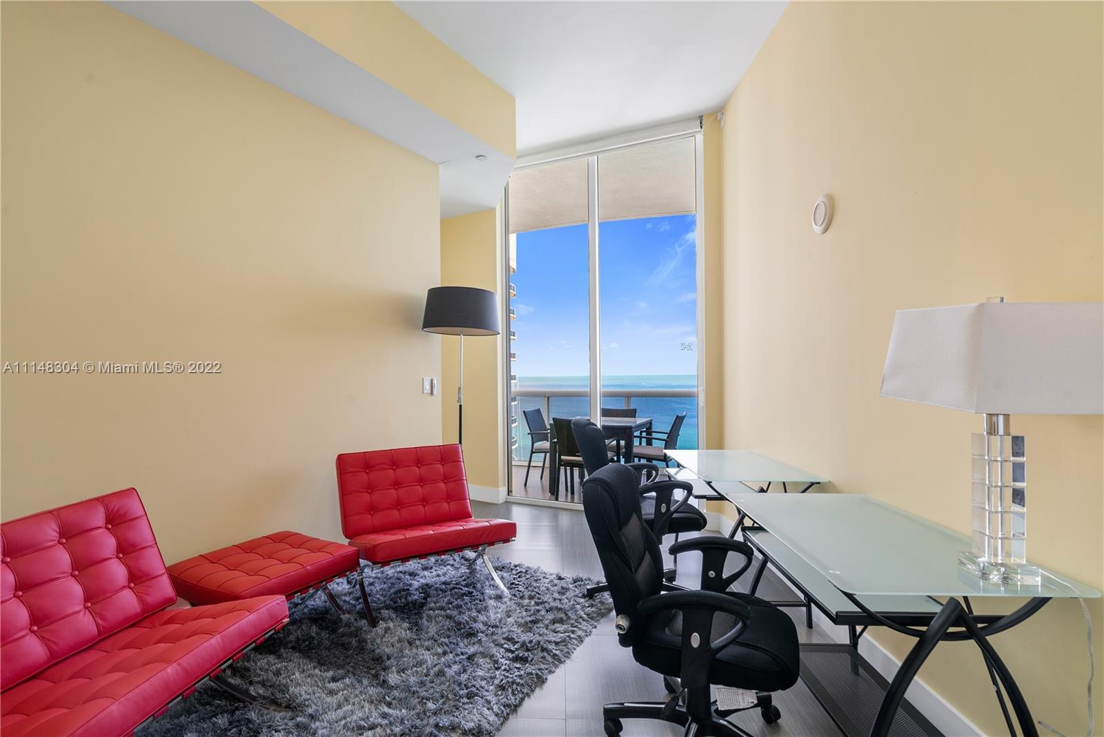 Luxurious 2 bedroom plus den at Trump Tower with direct ocean views. The unit is in immaculate condition and upgraded with tiled flooring, custom closets, and lighting throughout. Huge wrap terrace with panoramic views of the ocean. Stunning and open kitchen with built-in coffee maker, Subzero and Wolf appliances. The building has beach service, restaurant, state of the art gym, and so much more. The best value in Sunny Isles!