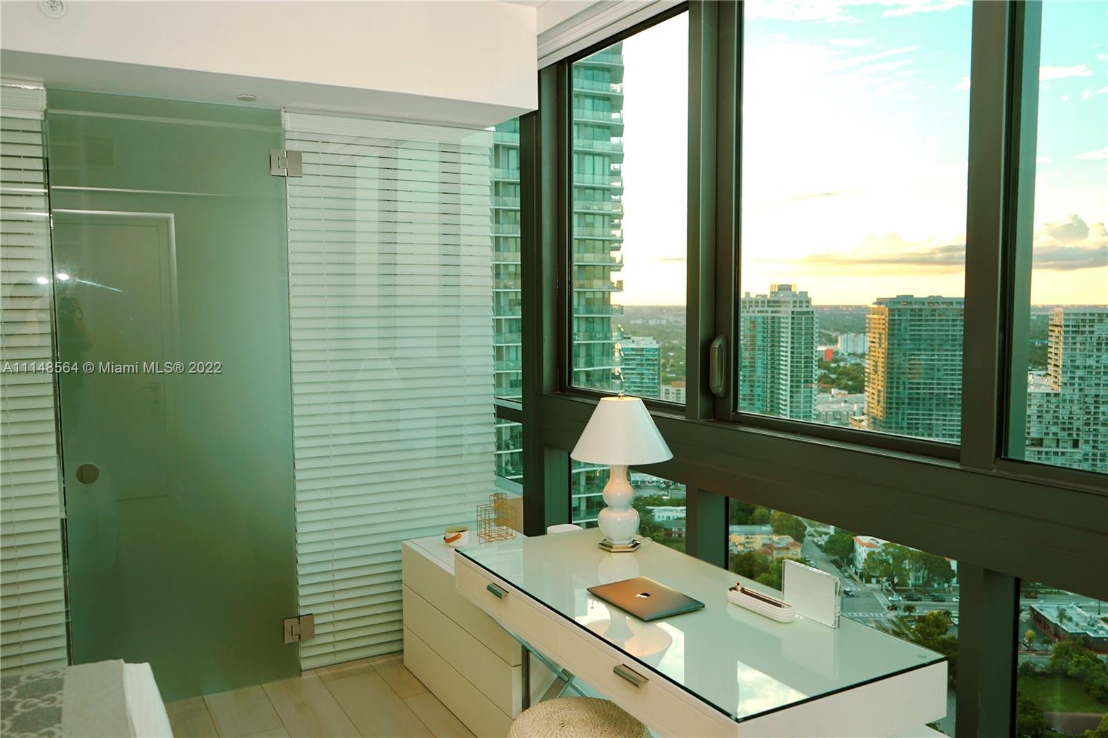 Paraiso Bay - new 1 bedroom & 1.5 bath apartment with direct breathtaking water views! Wood-look porcelain floors throughout the unit, Bosh appliances, top of the line finishes. Finished closets, roller shades & blackouts in bedrooms installed. Luxurious and state-of-the-art amenities, gym, spa, wine cellar, cigar lounge, theater room, two tennis courts, 100 feet diameter swimming pool. Private gated complex! Located in the edgewater neighborhood just minutes from Design District, Wynwood, Brickell, restaurants, entertainment and beaches. Unit is currently owner-occupied.