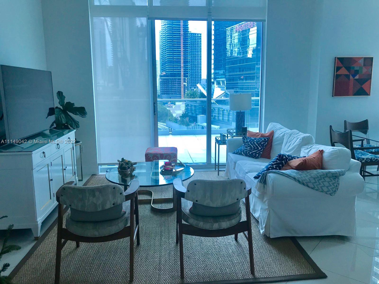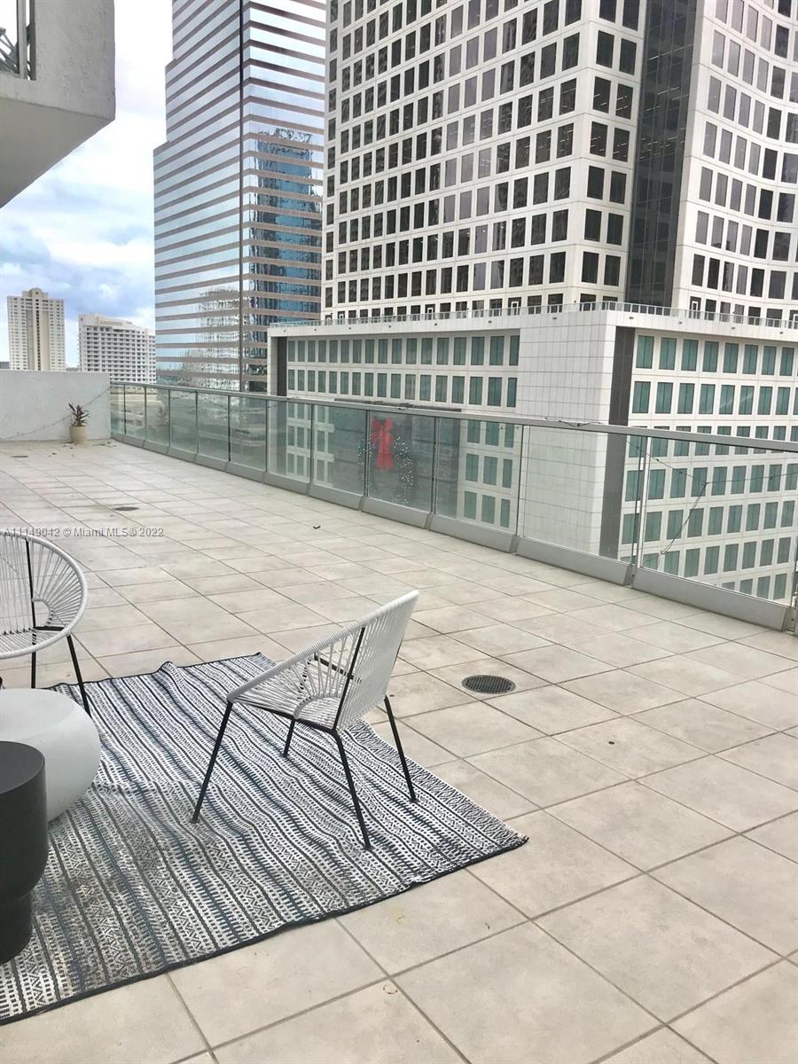 Beautiful corner 2/2 unit with 12' high celings. European kitchen and stainless steel appliances. Very unique property with HUGE terrace and amazing views of Brickell's skyline facing South. Building offers 24 hour security, gym, valet, concierge, pool area , club room and massage room. Located in the heart of the financial district and walking distance to Merry Brickell Village, restaurants and much more.
